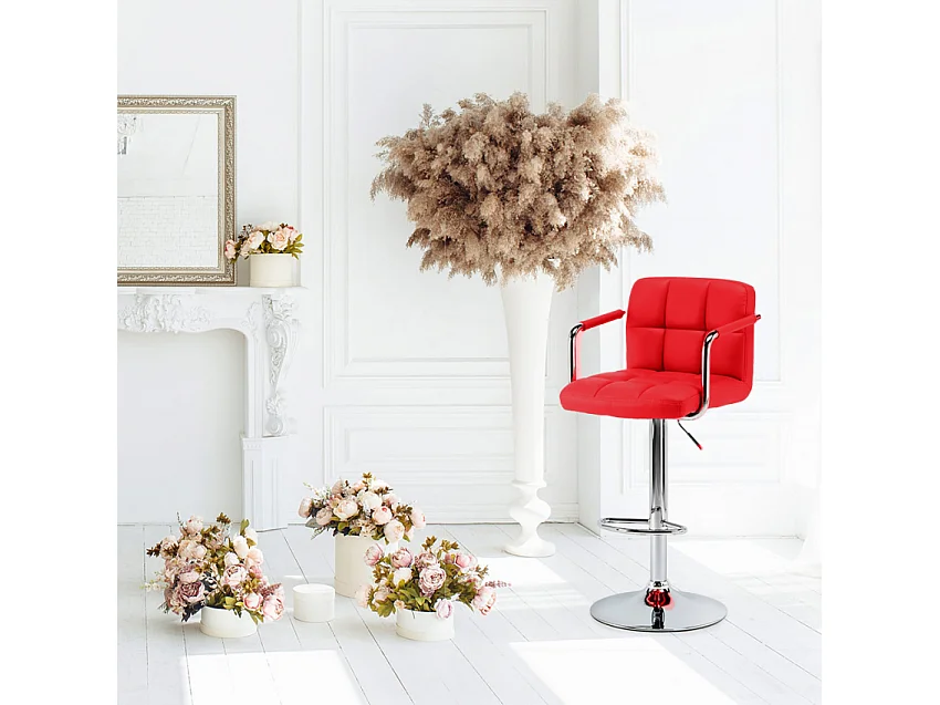 Taburete de bar cocina alto giratorio ajustable con respaldo y reposabrazos Las Vegas - Rojo