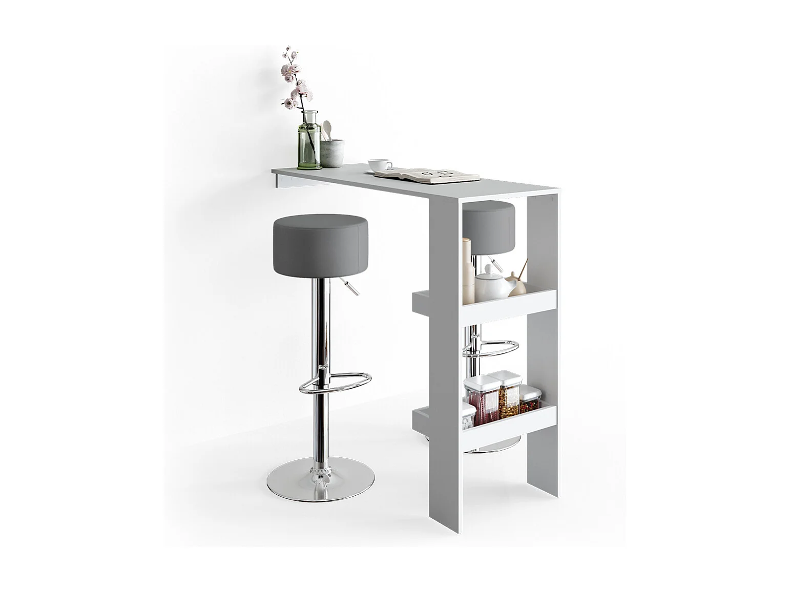 Juego de 2 sillas de bar de piel sintética gris, diseño moderno con respaldo ergonómico, estructura de metal resistente, cómodas y fáciles de limpiar.