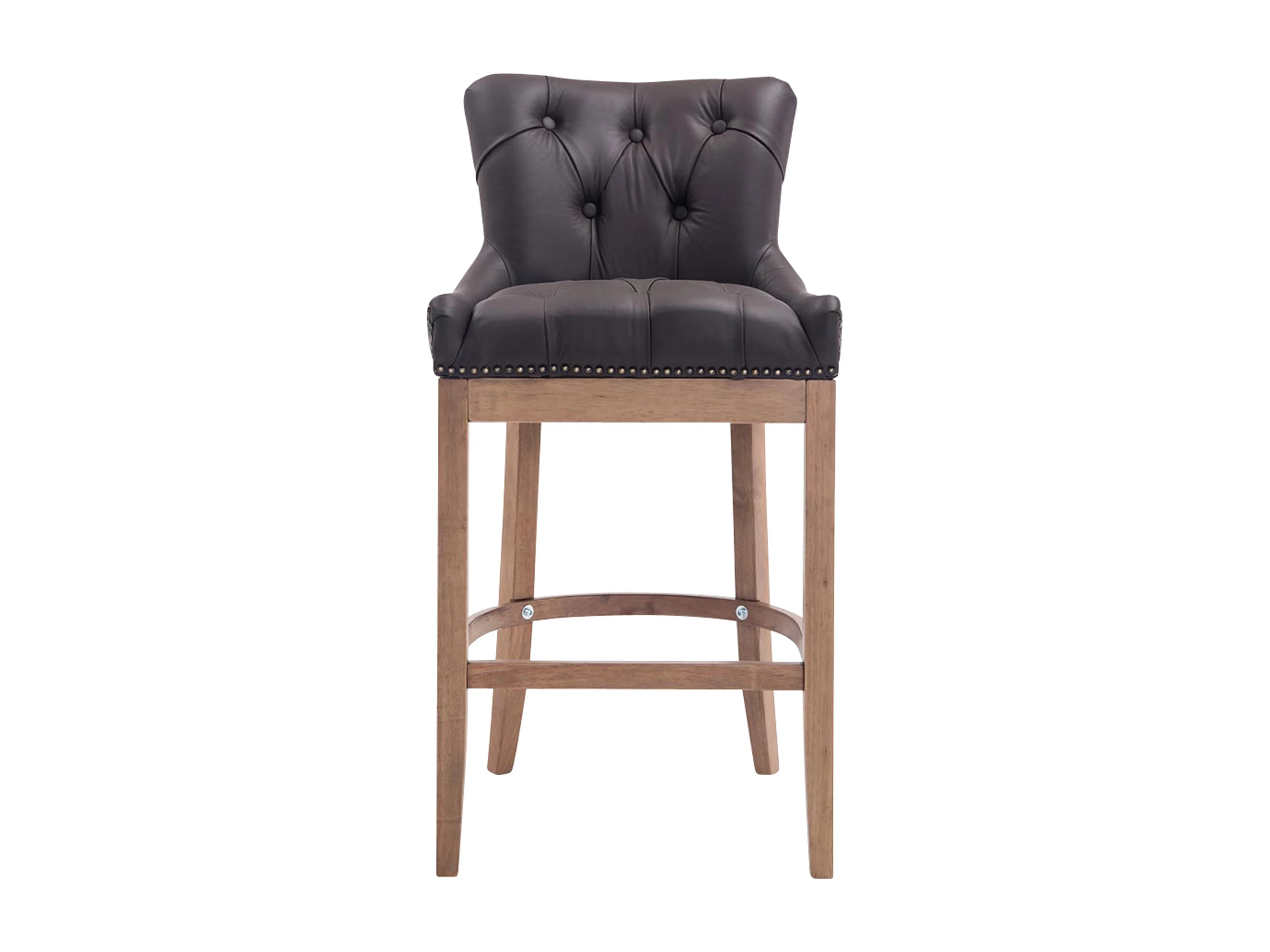 Taburete de bar - Cuero auténtico & Madera - Marrón - Lakewood