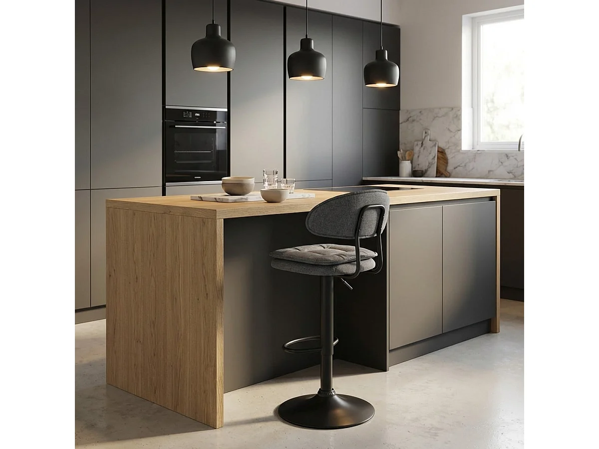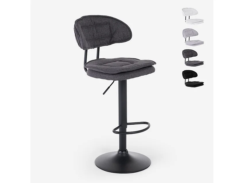 Taburete de bar de cocina ajustable moderno en tela tapizada Nashville. - Gris Oscuro