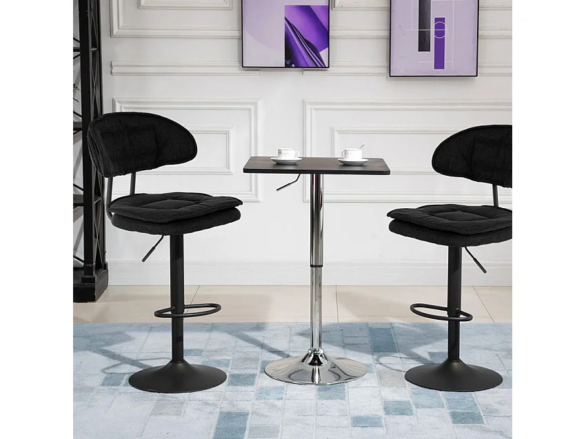 Taburete de bar de cocina ajustable moderno en tela tapizada Nashville. - Negro
