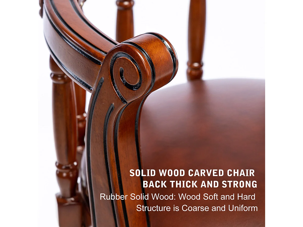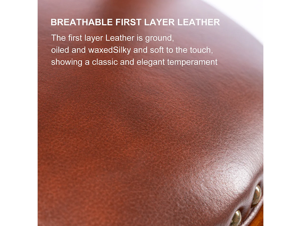 Taburete de bar de cuero genuino con respaldo de madera giratorio de 360°, altura de barra para cocina, sala de estar, marrón