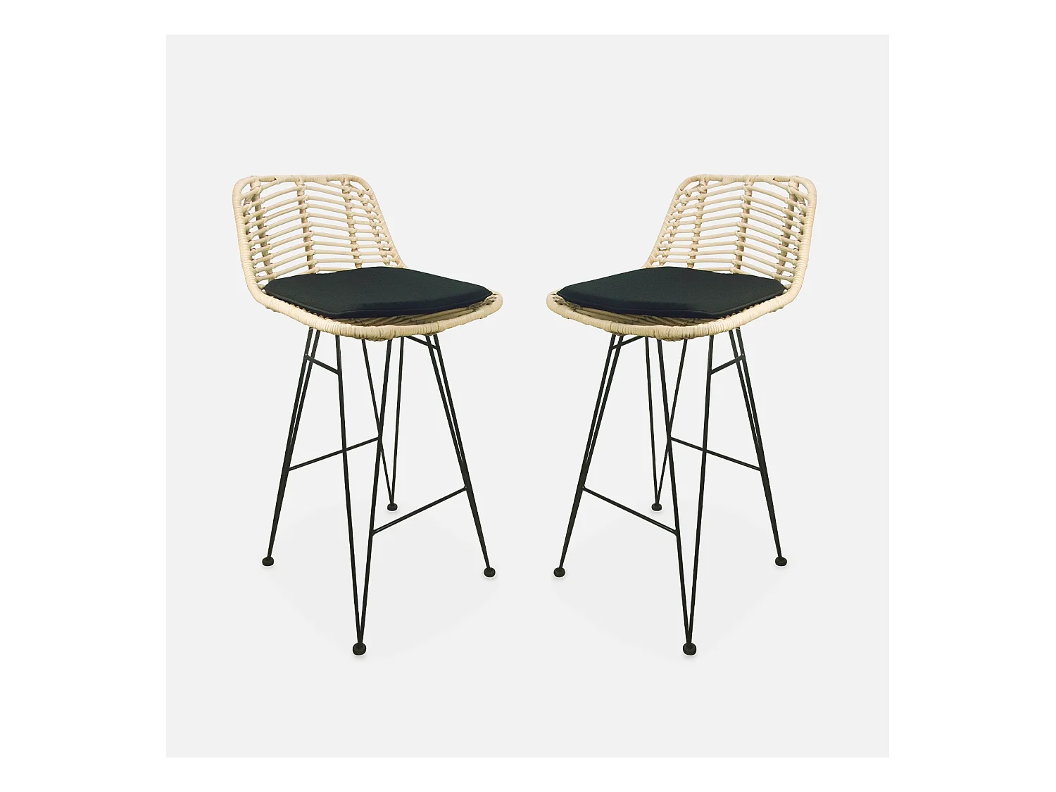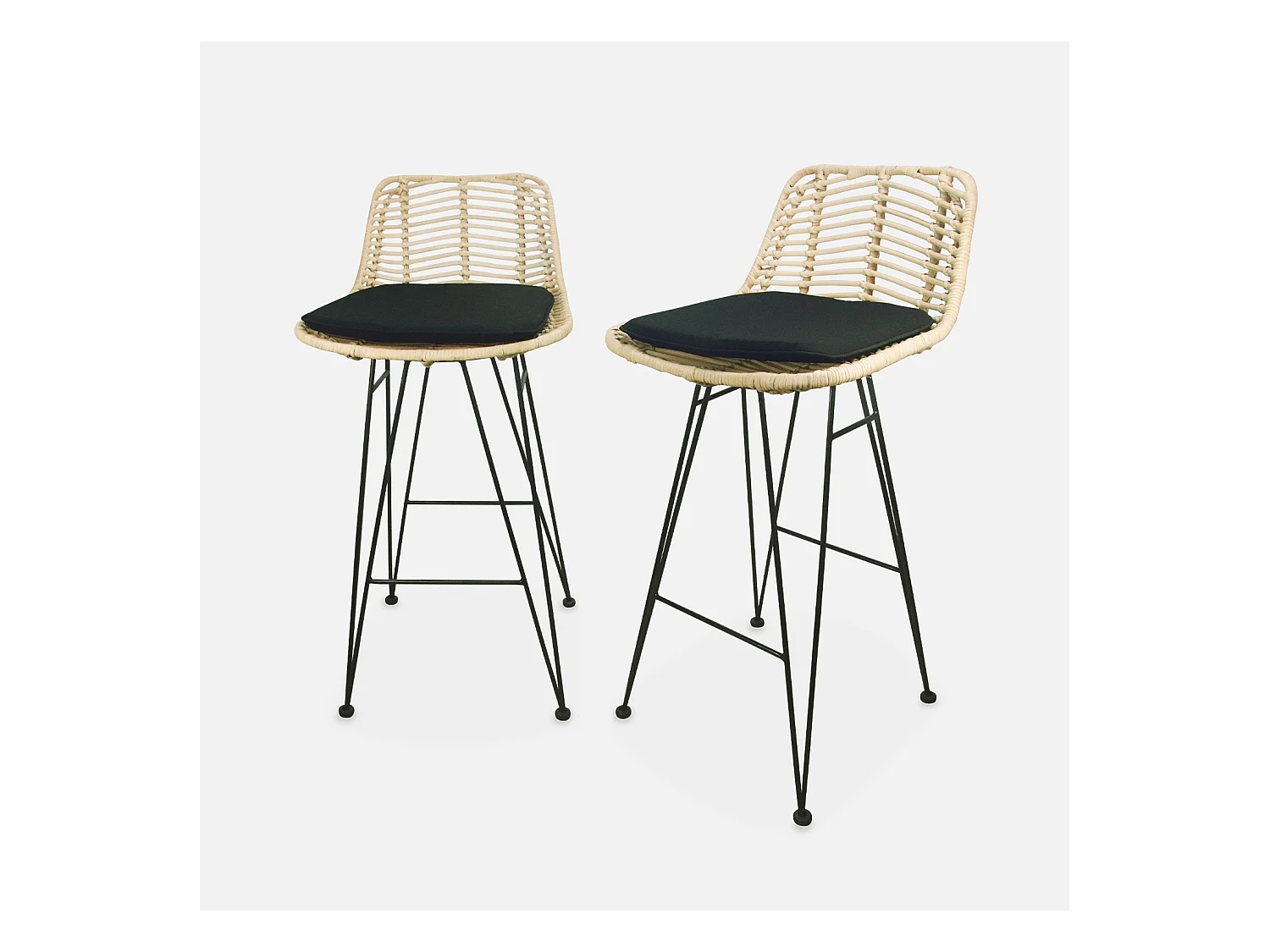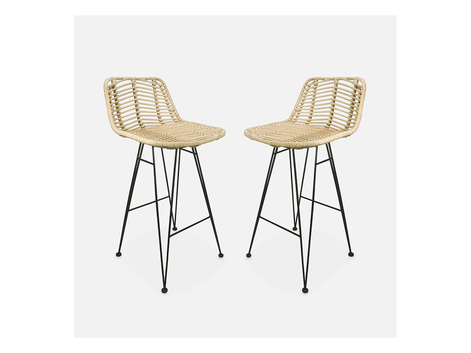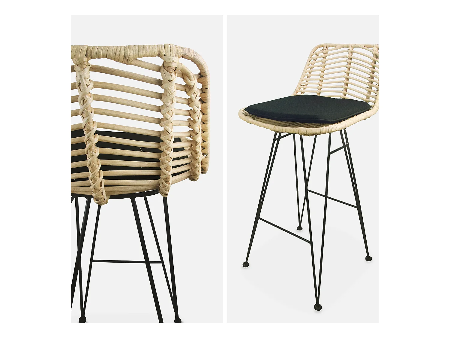 Conjunto taburetes de bar BALI de metal de 65 cm con asiento de ratán