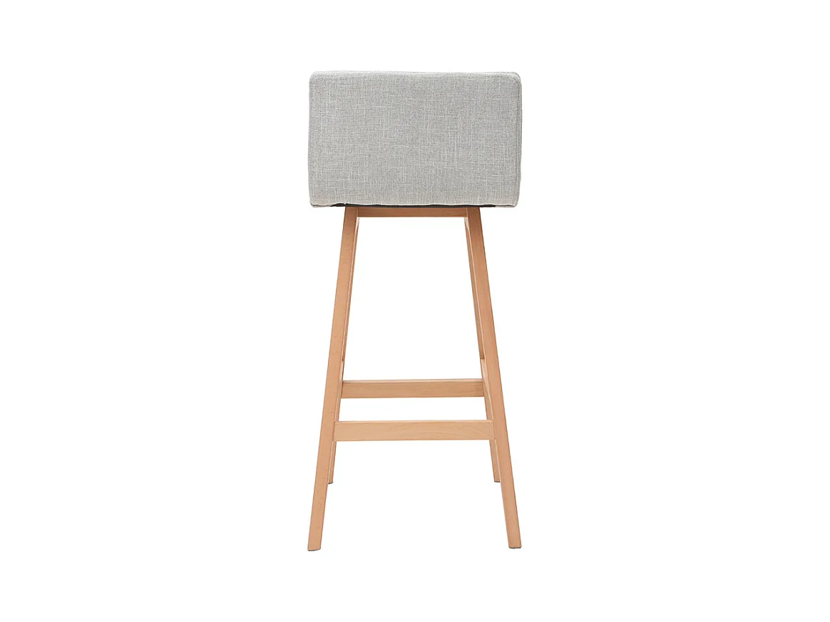 Taburete de bar de lino con cojín, diseño moderno, madera y tela, gris, con reposapiés (55 x 48 x 100 cm)