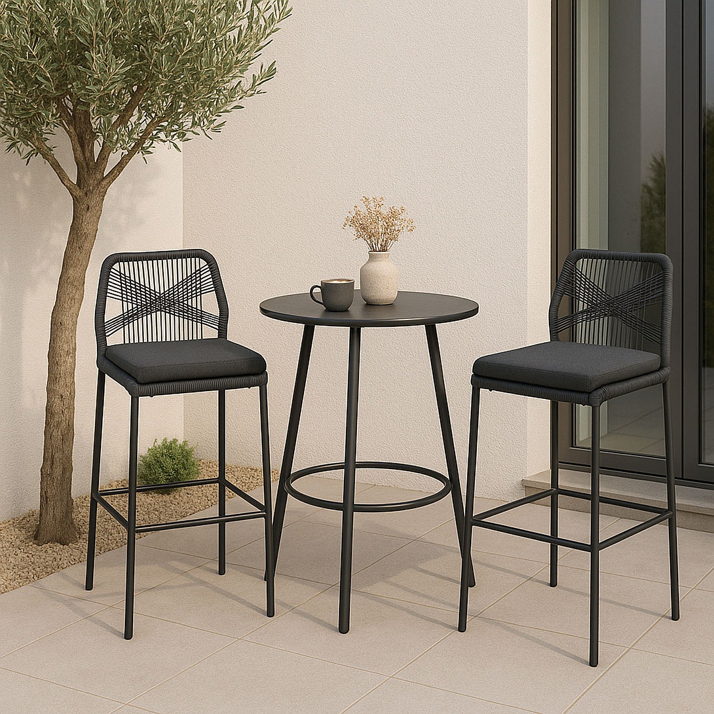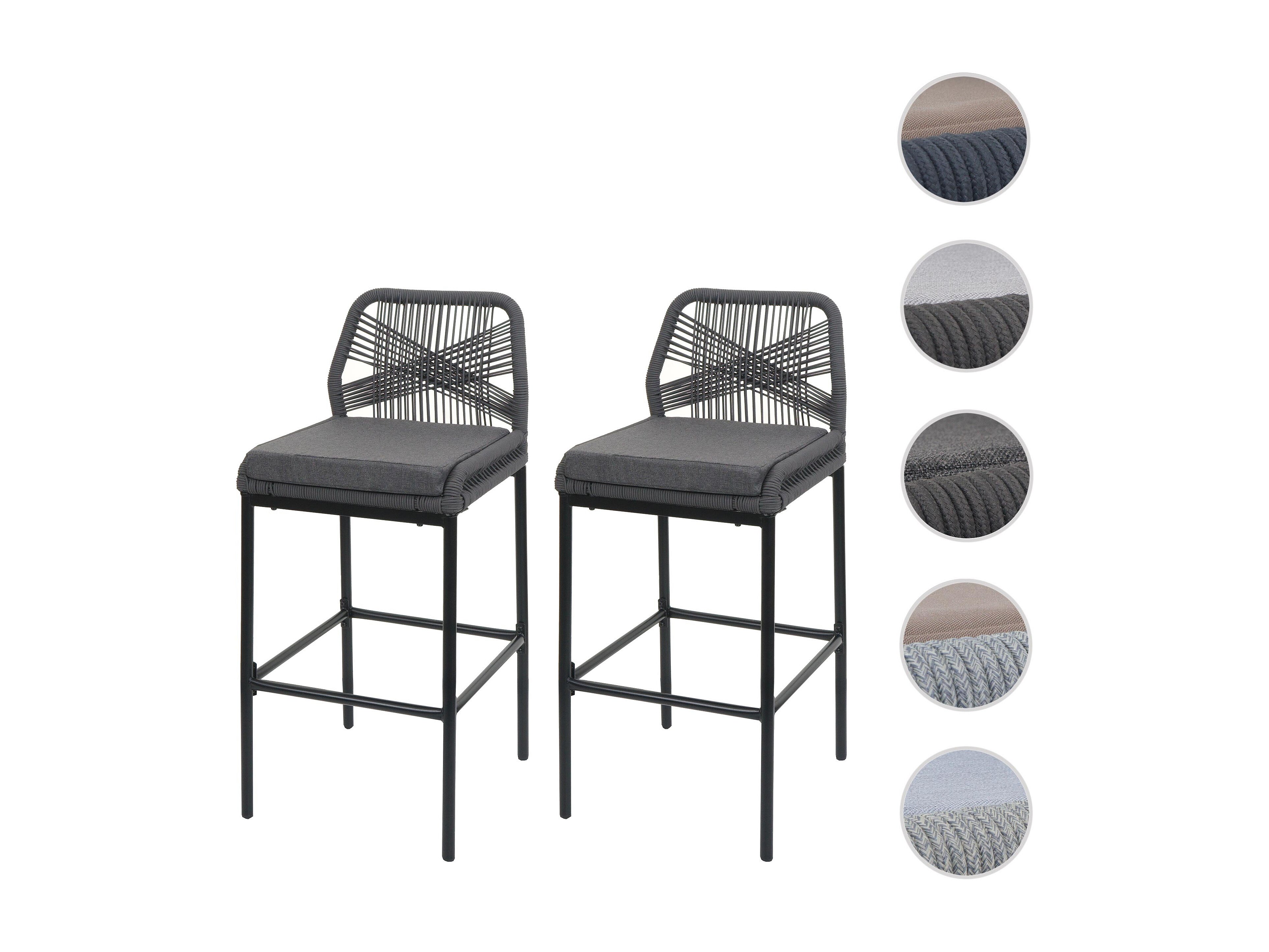 Taburete de bar MCW-O21 (set de 2), antracita, cojín gris oscuro