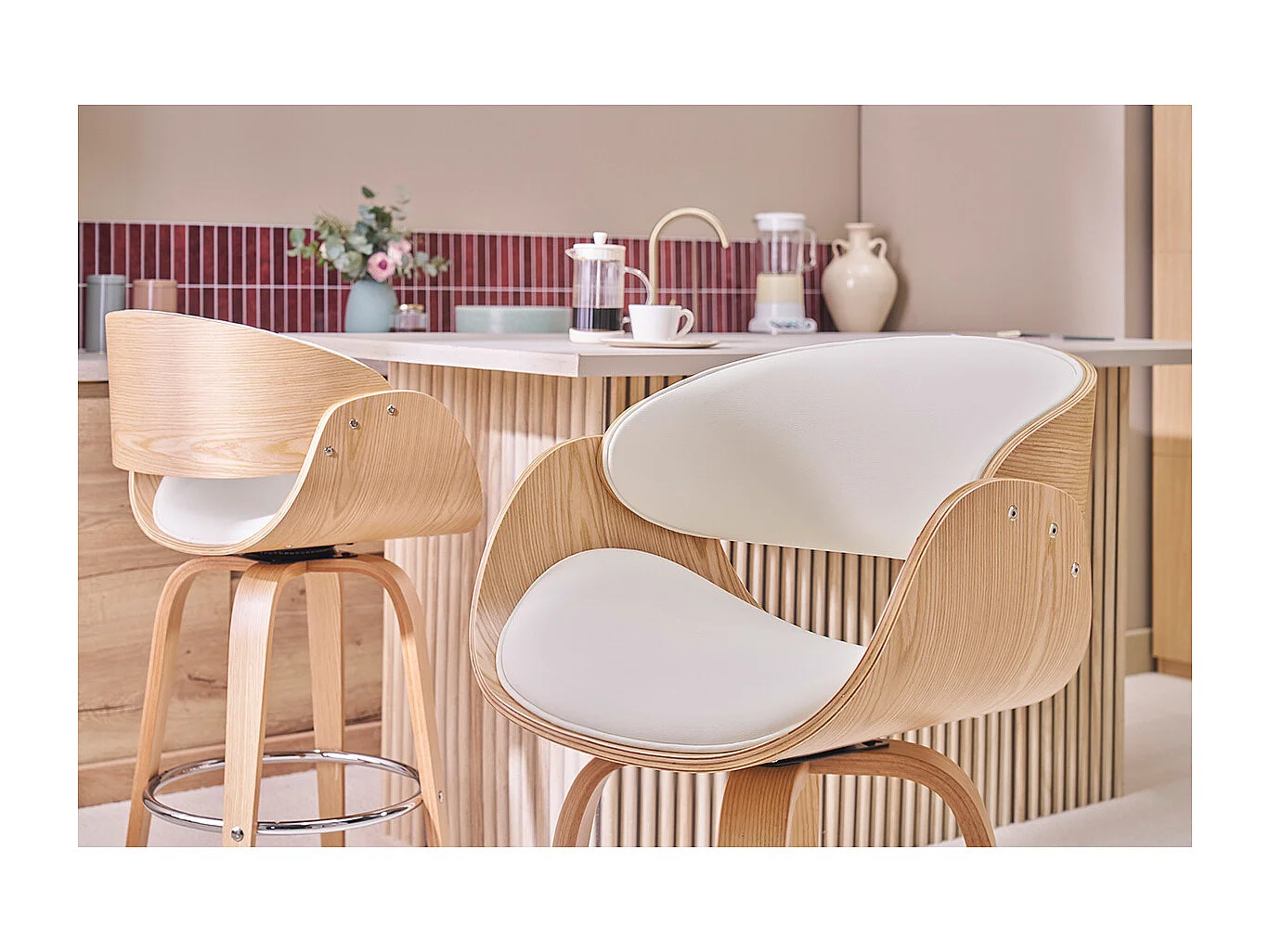 Taburete de bar moderno blanco y madera clara 65 cm BENT