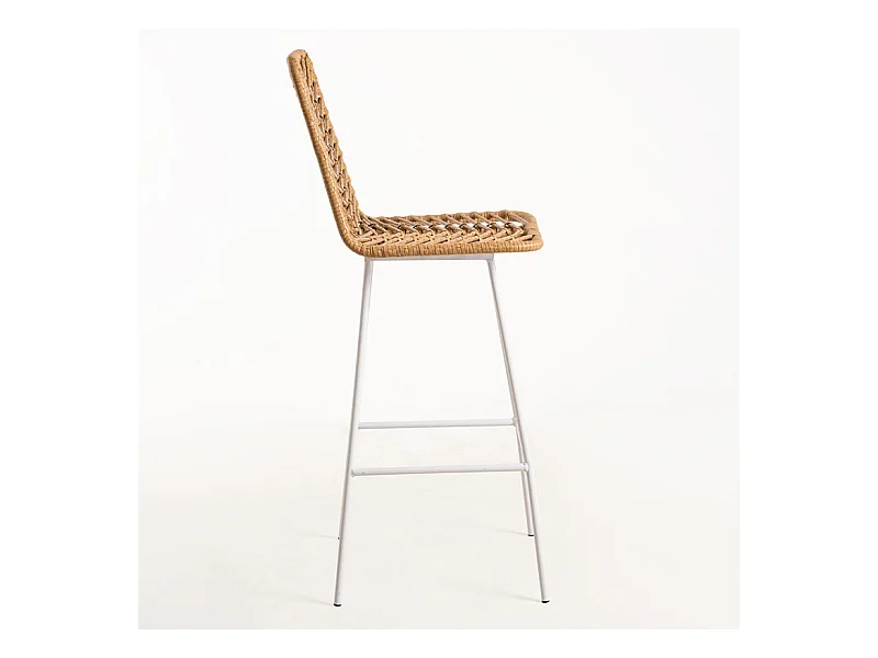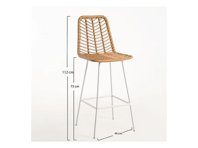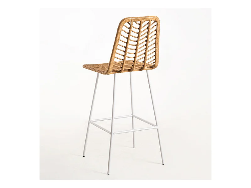 Taburete de bar Taka de ratán natural y acero blanco 73 cm