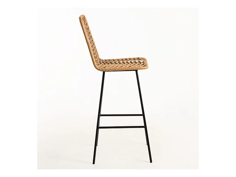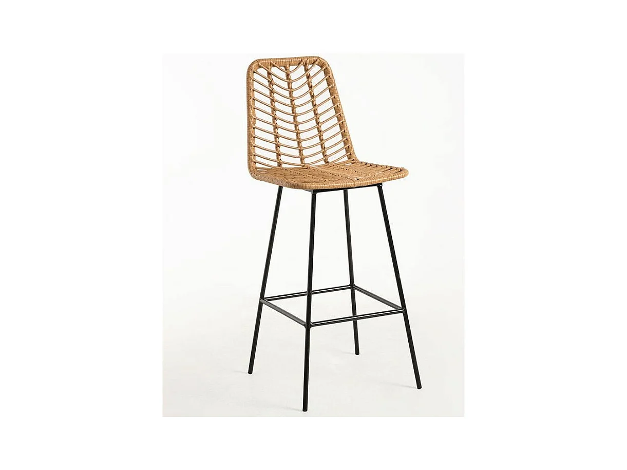 Taburete de bar Randry de mimbre natural con patas de metal negro