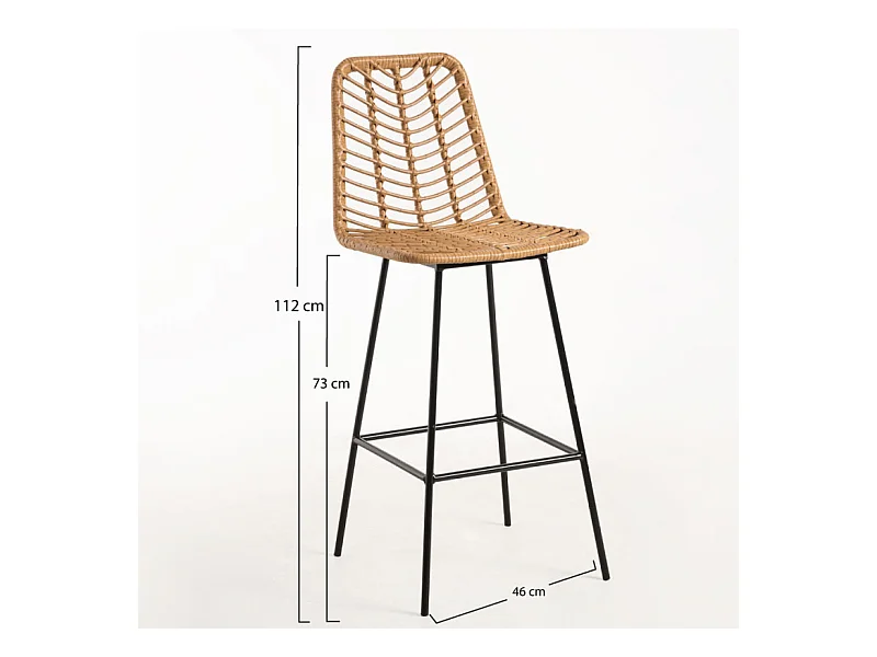 Taburete de bar Taka de ratán natural y acero negro 73 cm