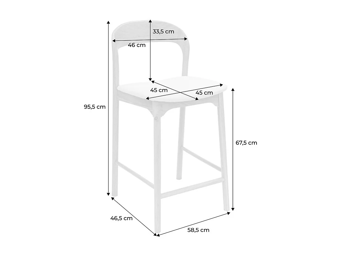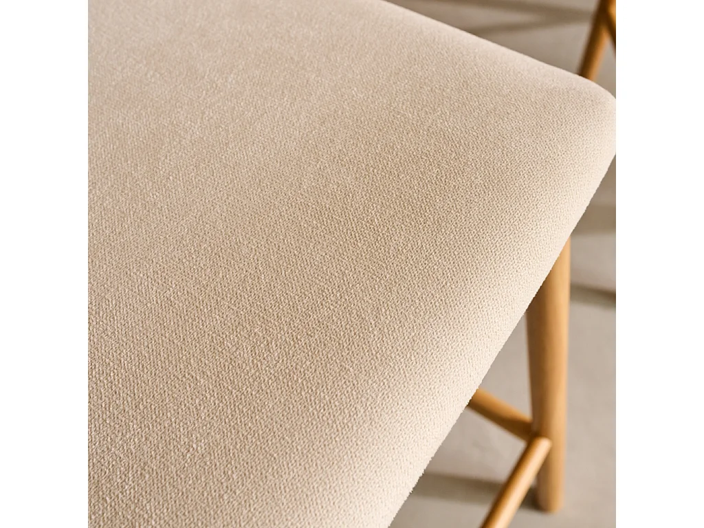 Taburete de bar vintage de madera de hevea y tela, set de 2 natural