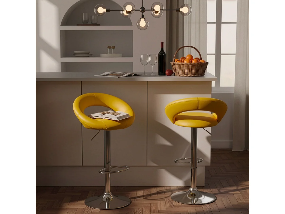Taburete de cocina alto, giratorio y regulable con Reposapiés Chicago - Amarillo