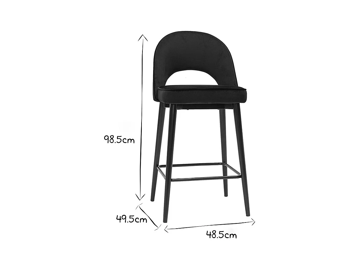 Set de 2 taburetes de cocina fijos de terciopelo negro con patas de metal negro 65 cm KAOLY