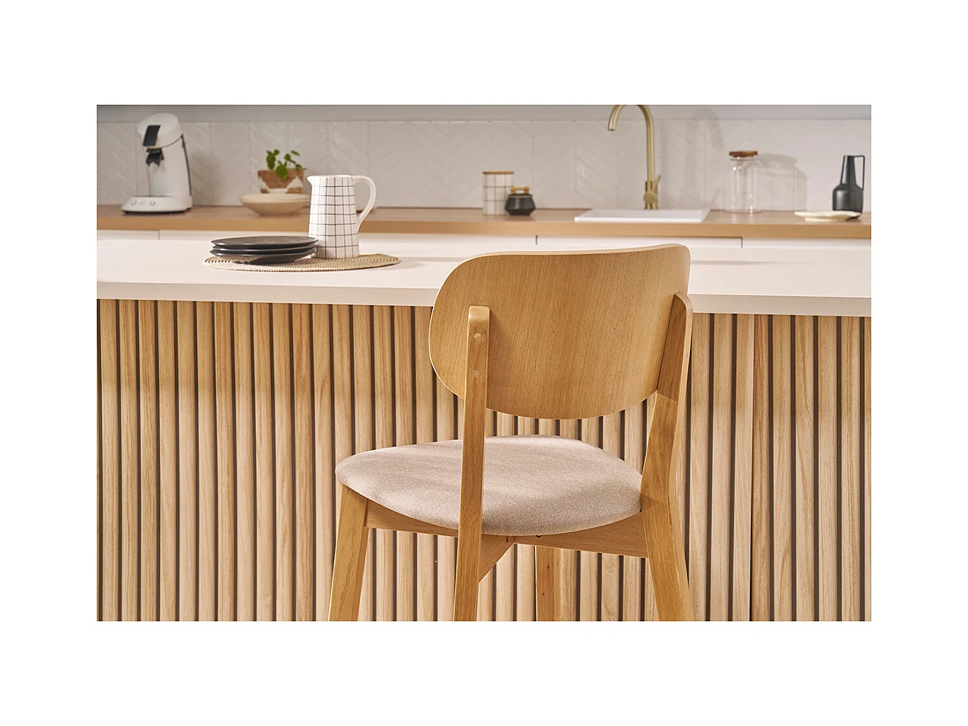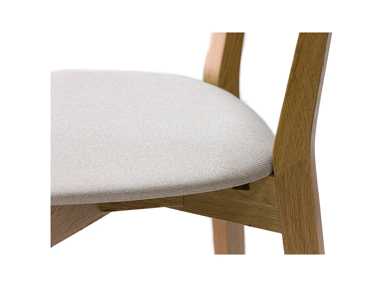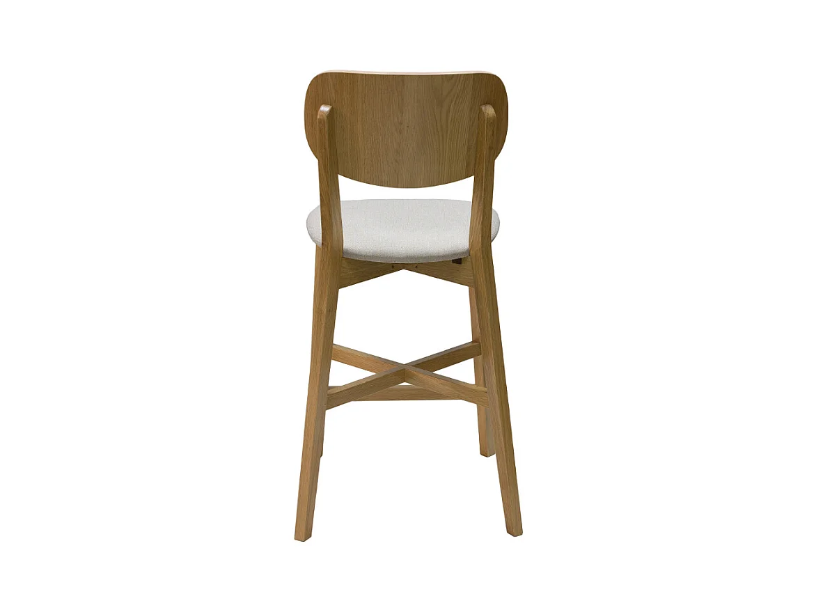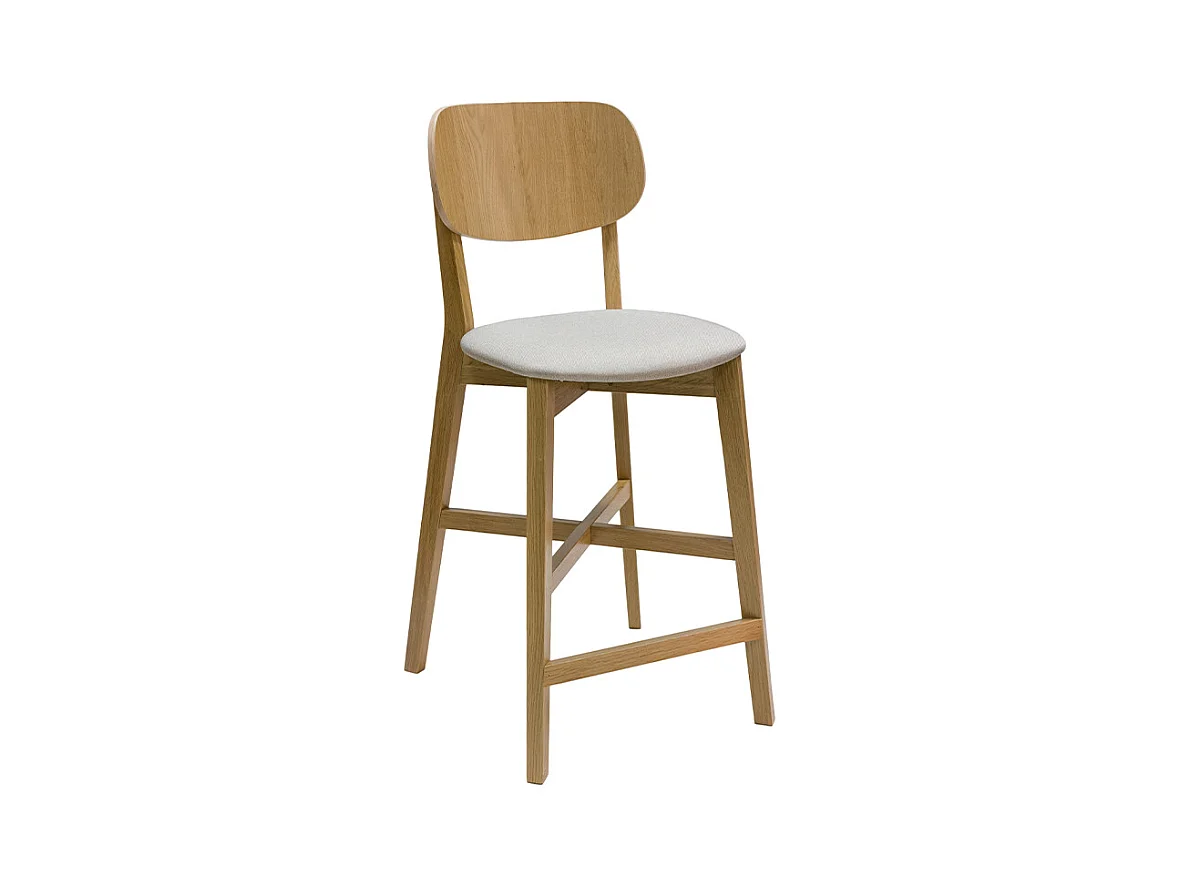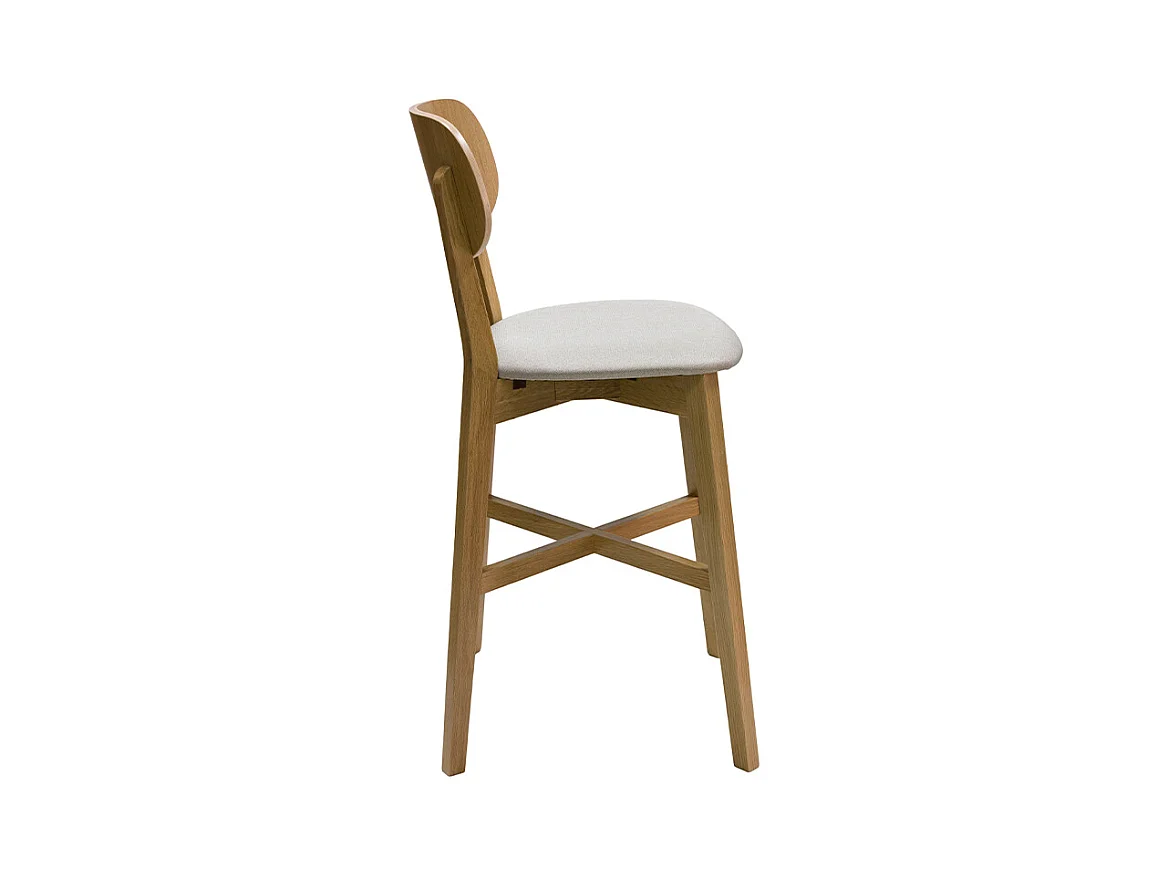 Taburete de cocina de roble macizo y tela beige 65 cm LUCIA