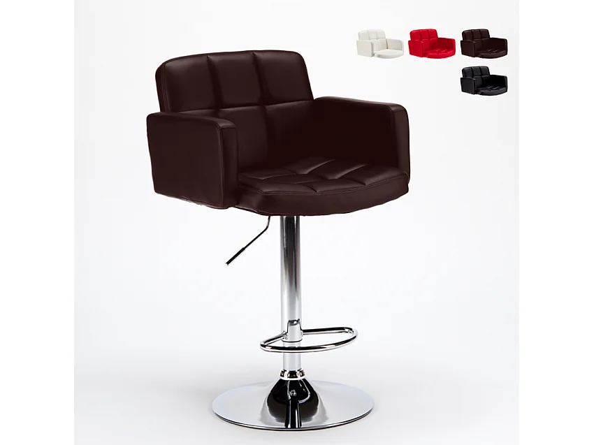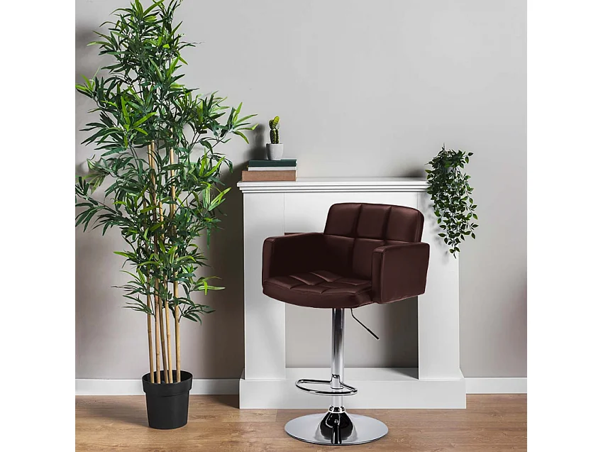 Taburete de cocina y bar con Reposabrazos de Cuero Polipiel Oakland - Marrón