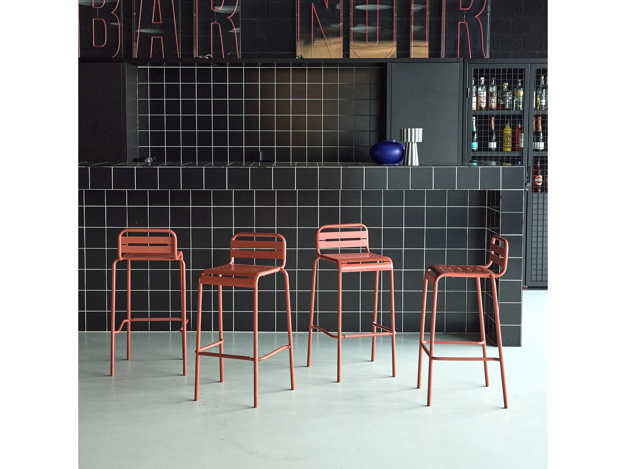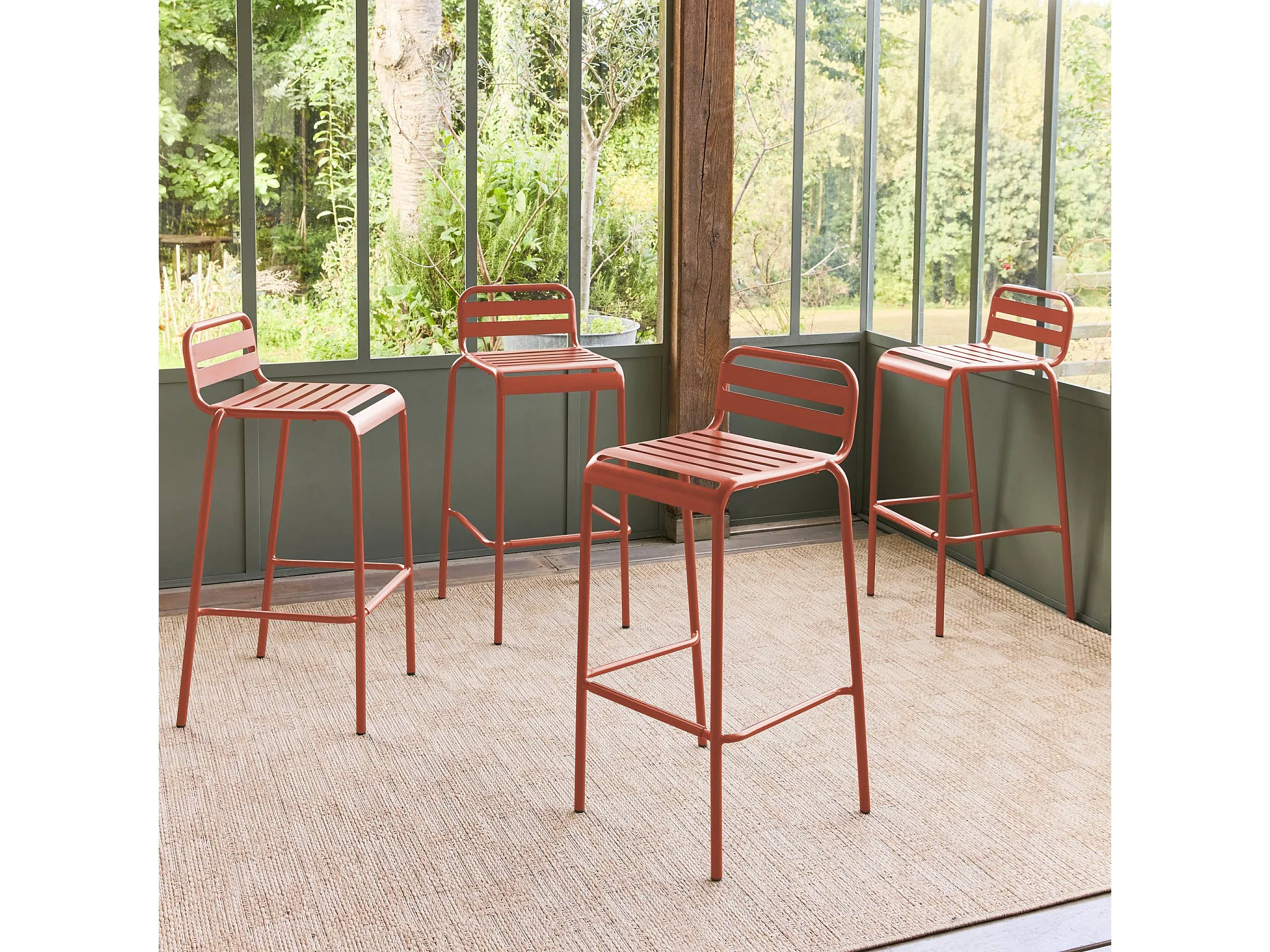 Taburete de jardín de acero, set de 4 terracotta