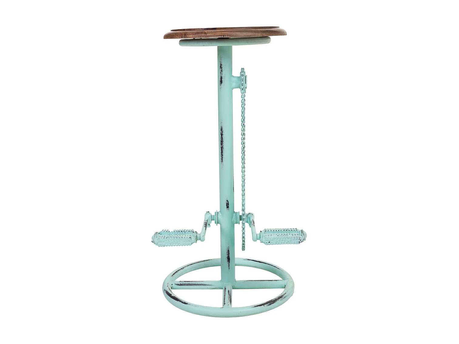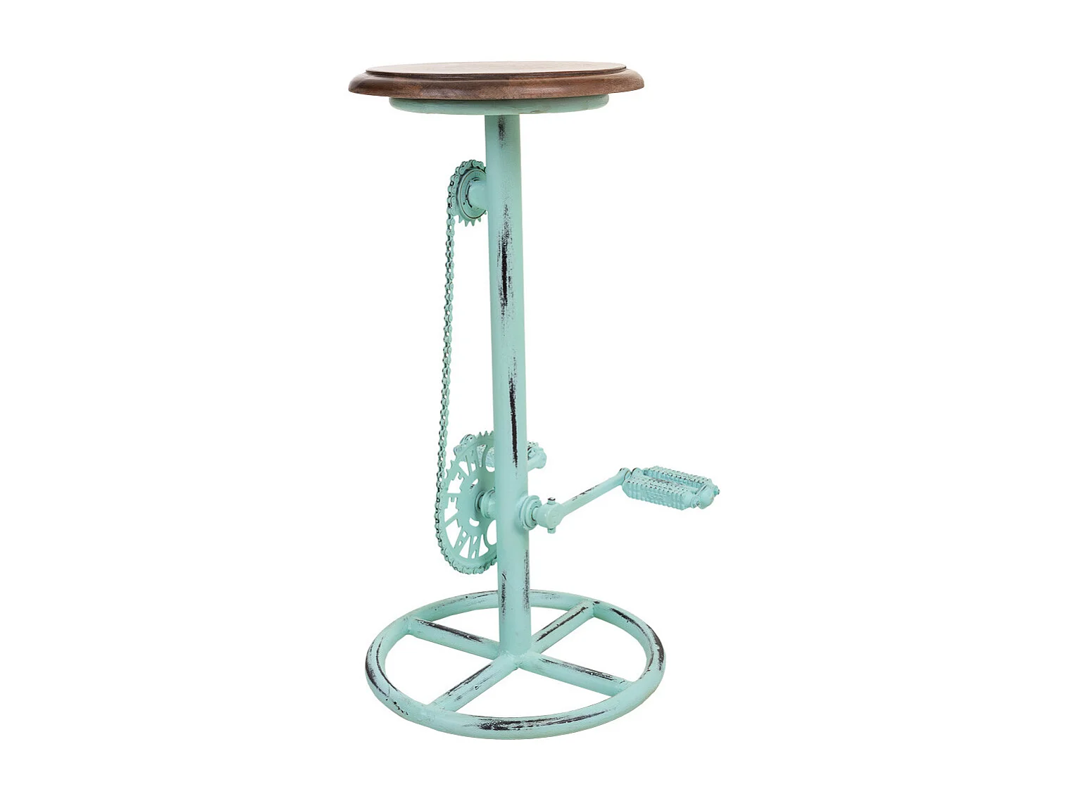Taburete de madera y metal turquesa