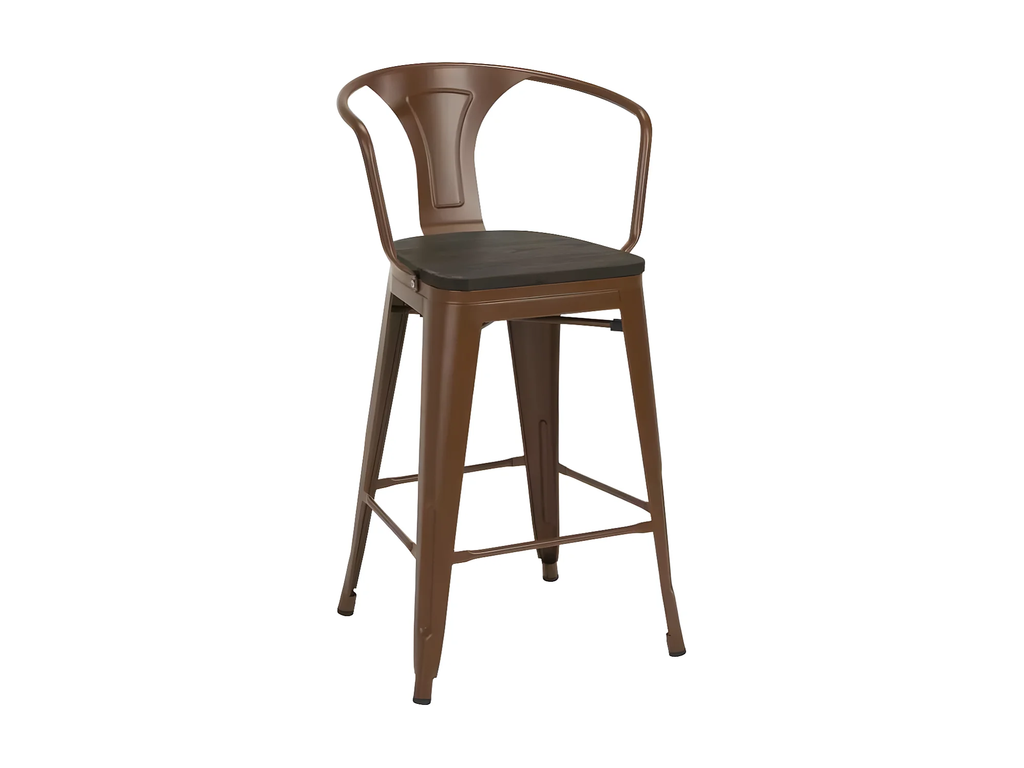 taburete de metal y madera con respaldo de diseño industrial estilo steel wood back - Marrón