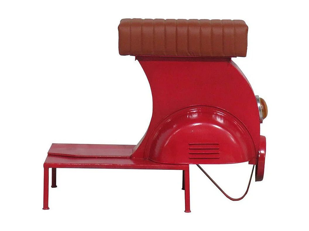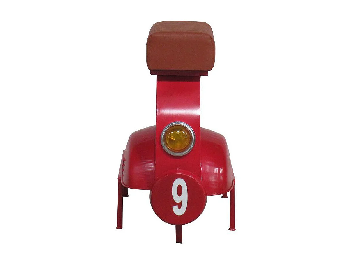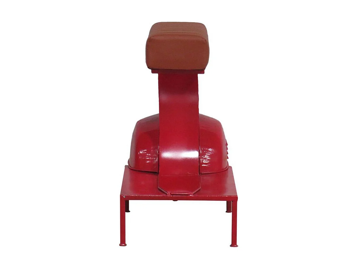Taburete De Metal Y Piel Acabado Artesanal Rojo