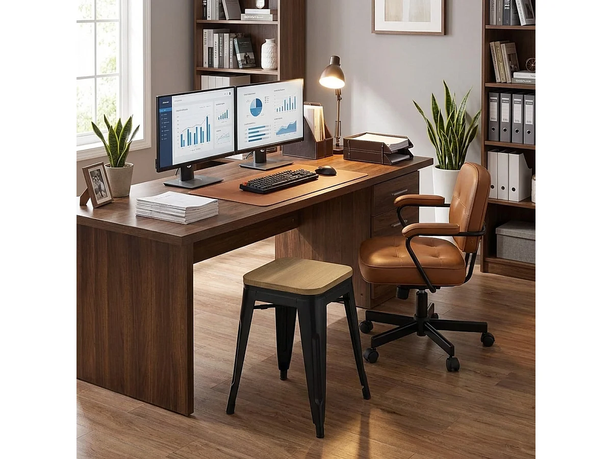 taburete industrial metal bar cocina madera steel rocket wood - Negro