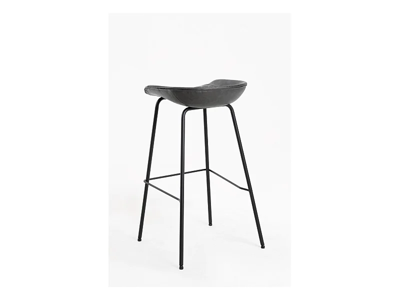 Lote de 2 taburetes de bar con respaldo de efecto cuero gris cuarzo colección NETS - Estilo industrial