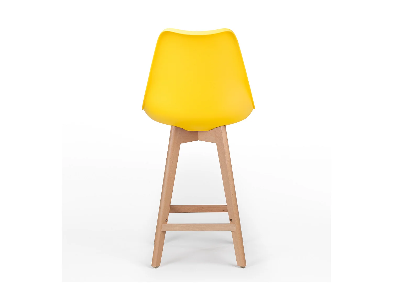Taburete nórdico con cojín de polipiel amarillo limón y patas de haya clara Tula 67 cm