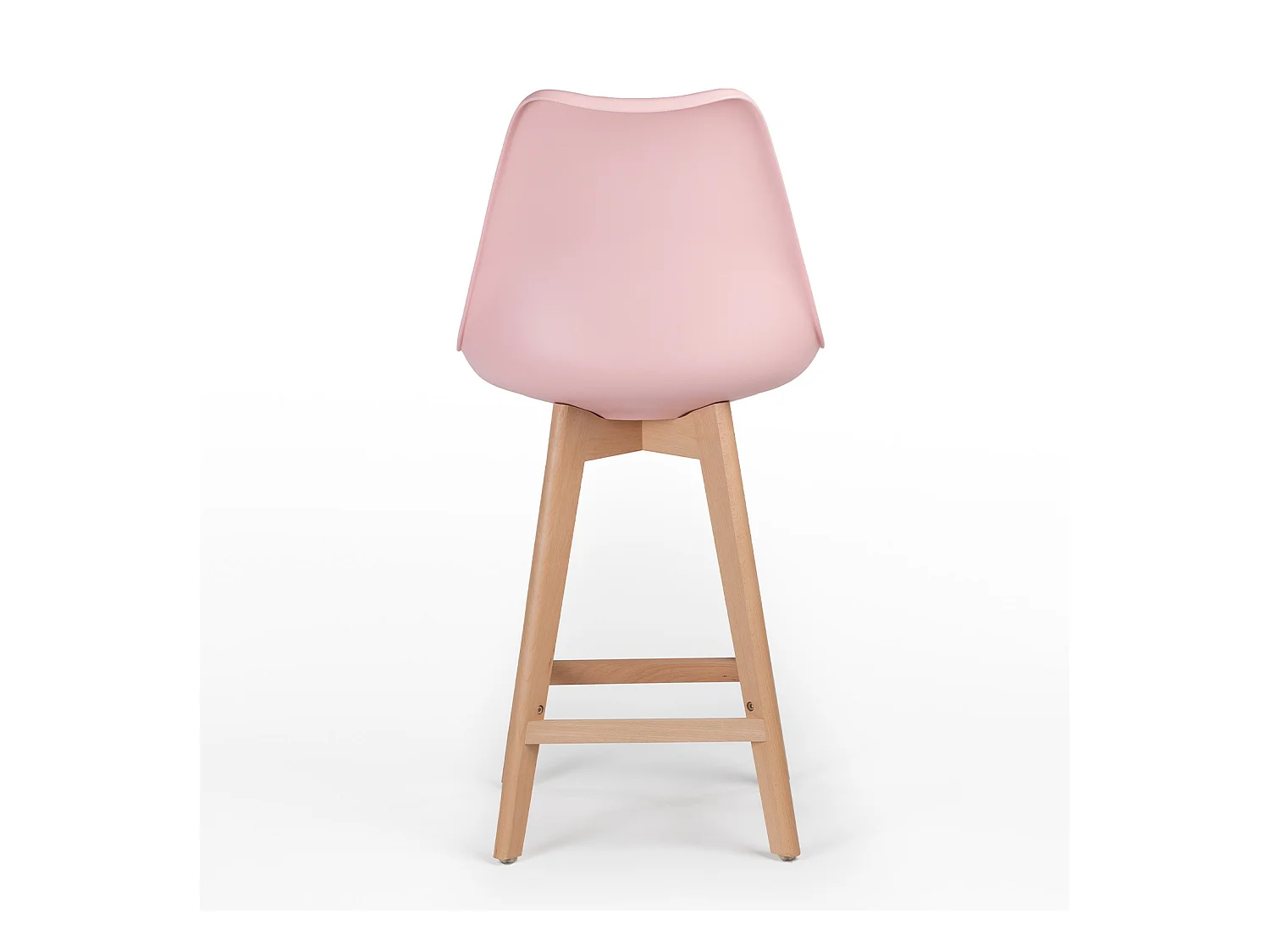 Taburete nórdico con cojín polipiel rosa claro y patas de haya clara Tula 67 cm