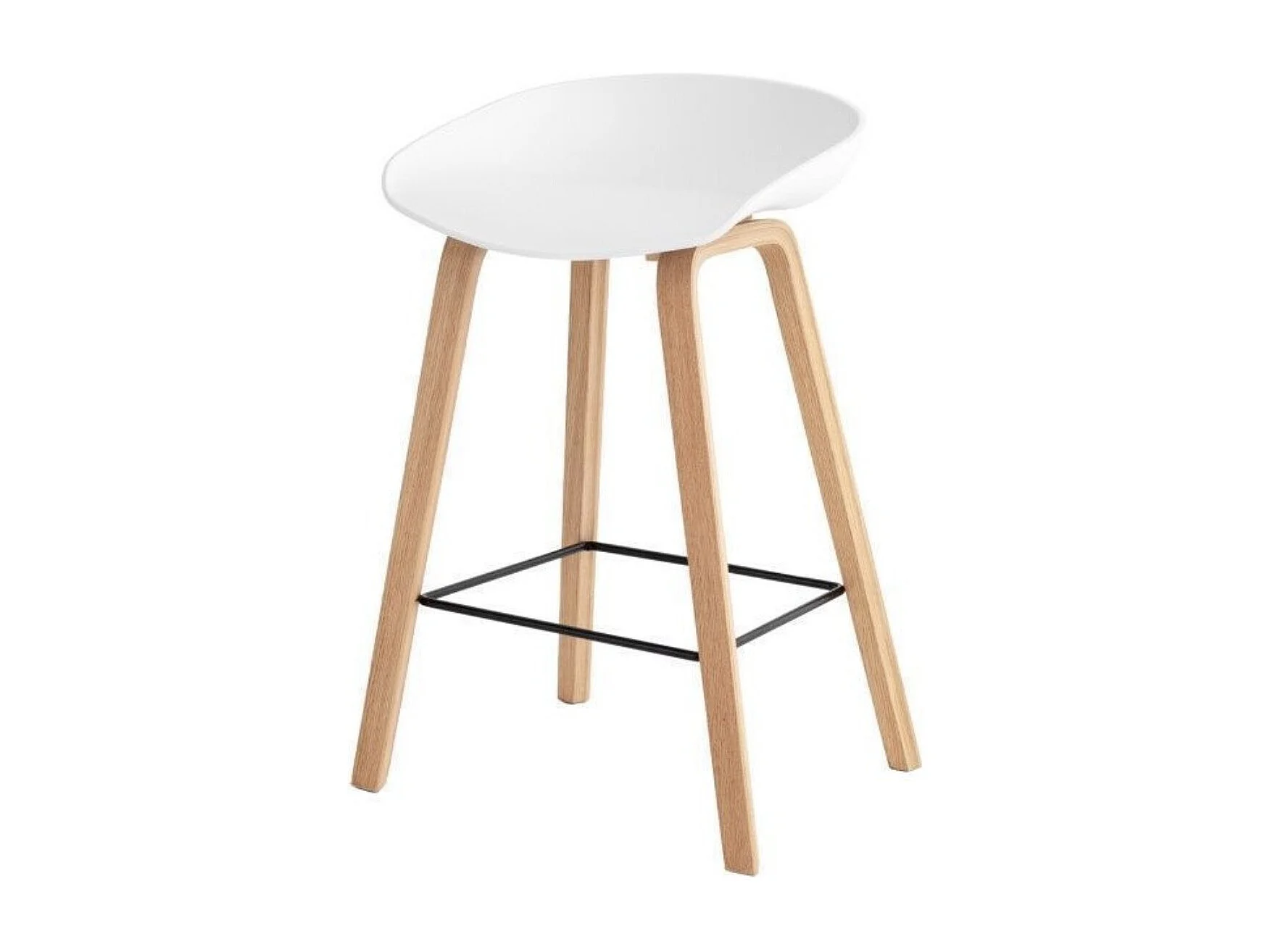 Taburete nórdico en madera de haya y asiento blanco Korane 74,5 cm