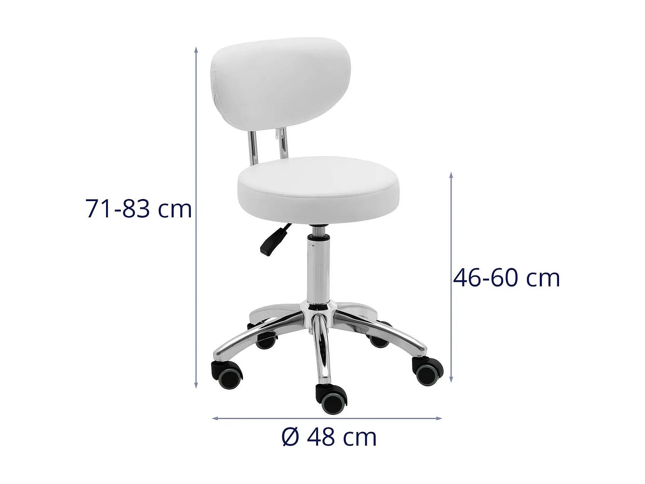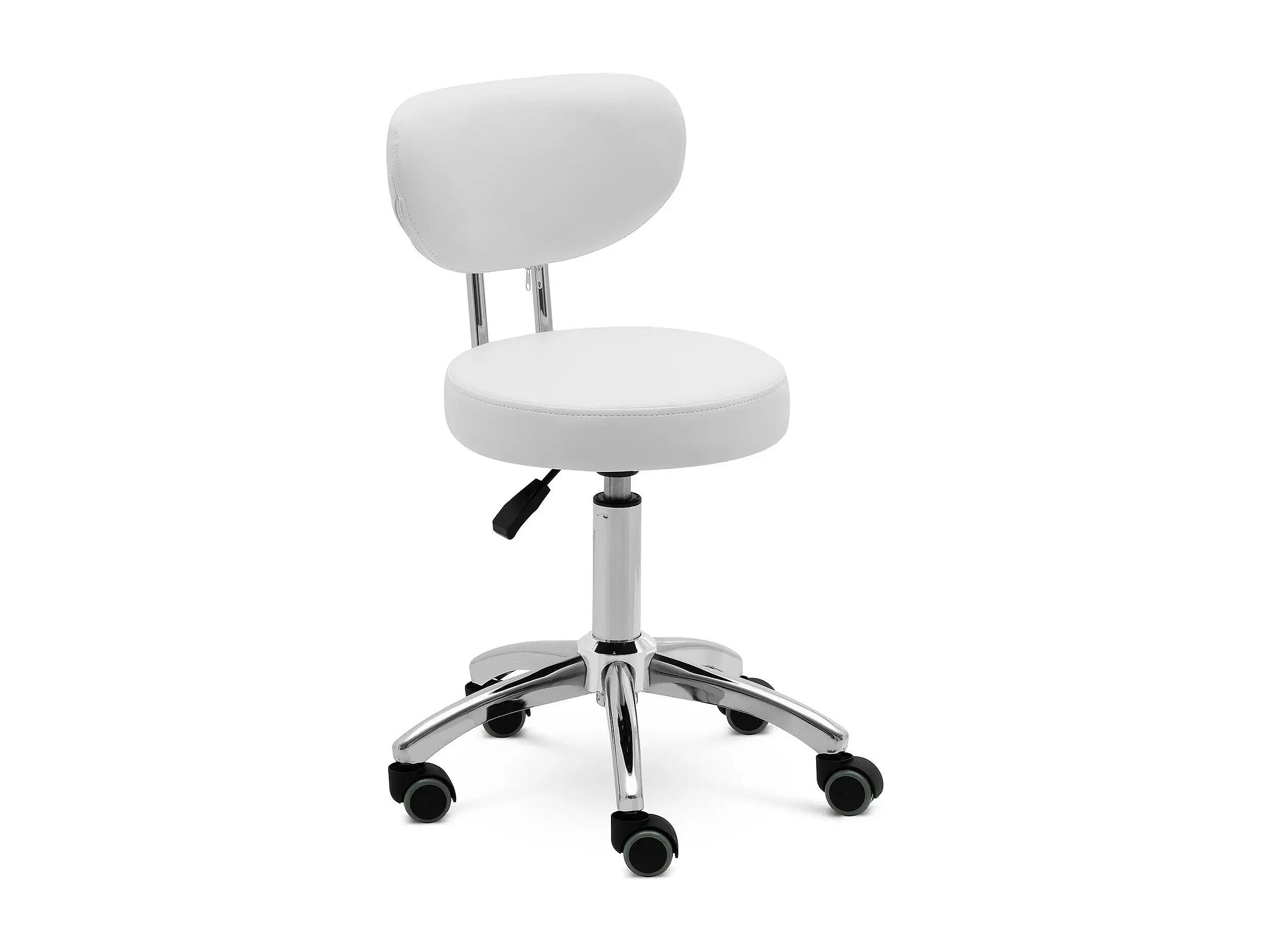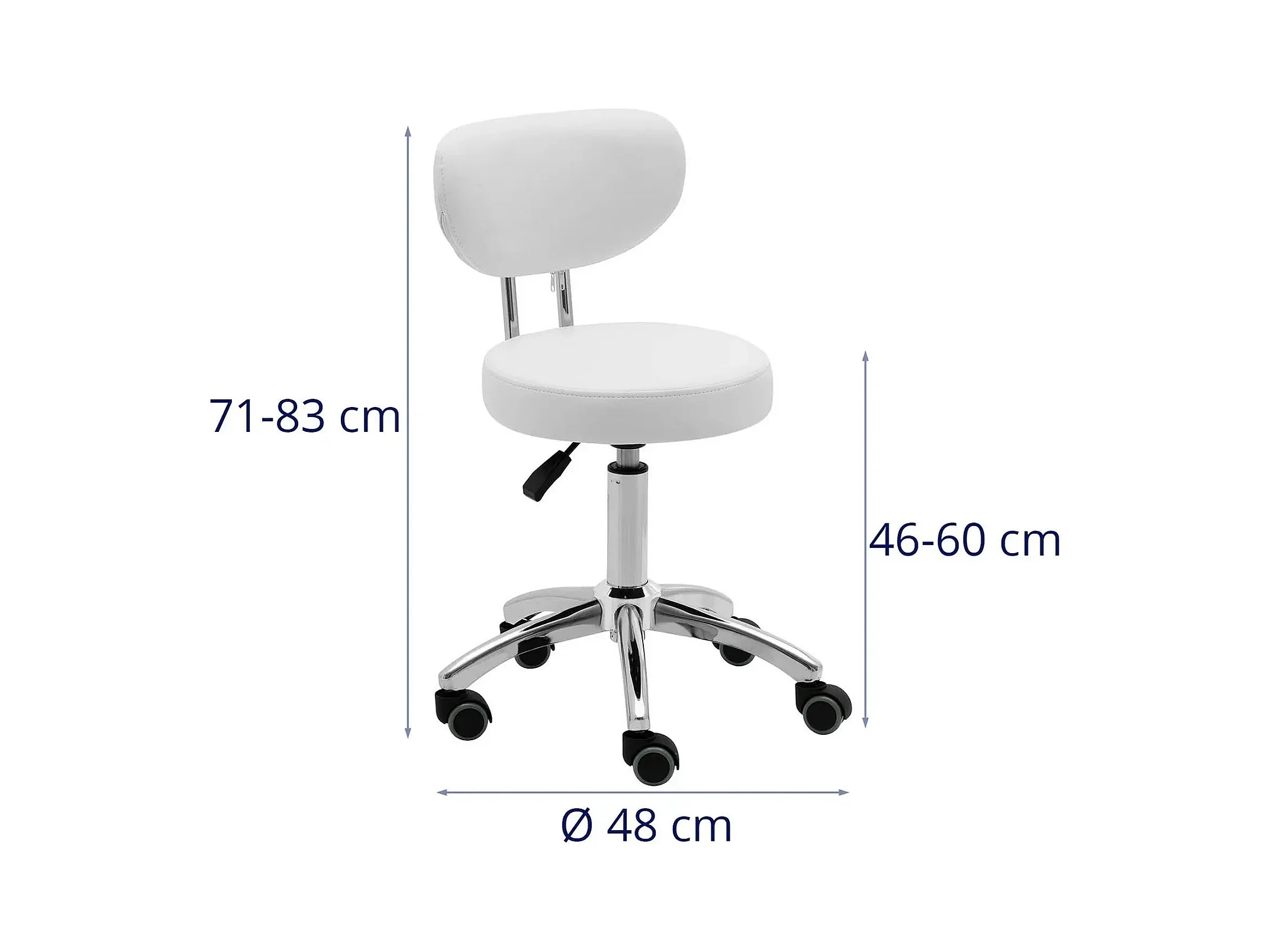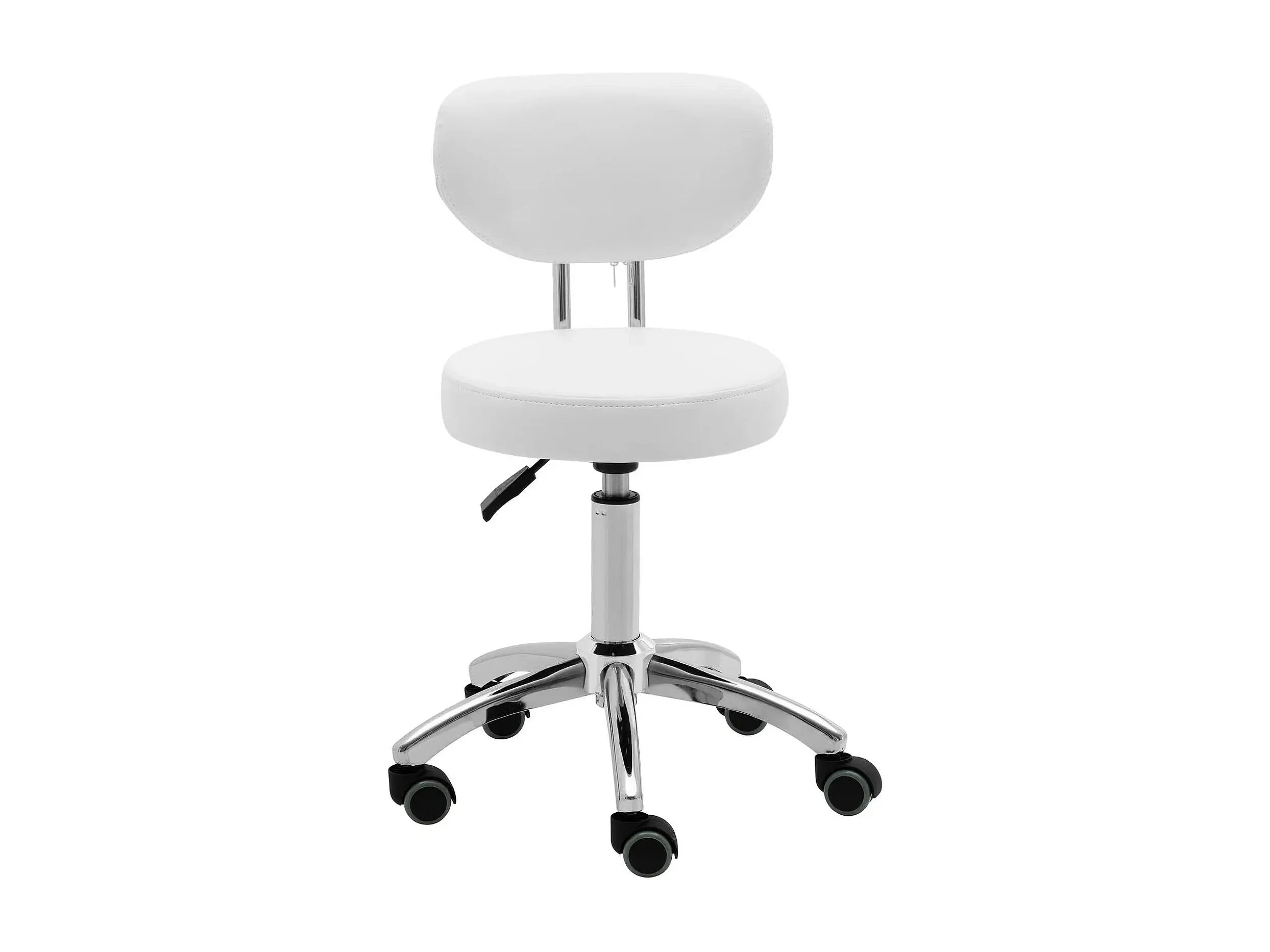 Taburete profesional con ruedas y respaldo 60 cm 150 kg color blanco 14_0010098