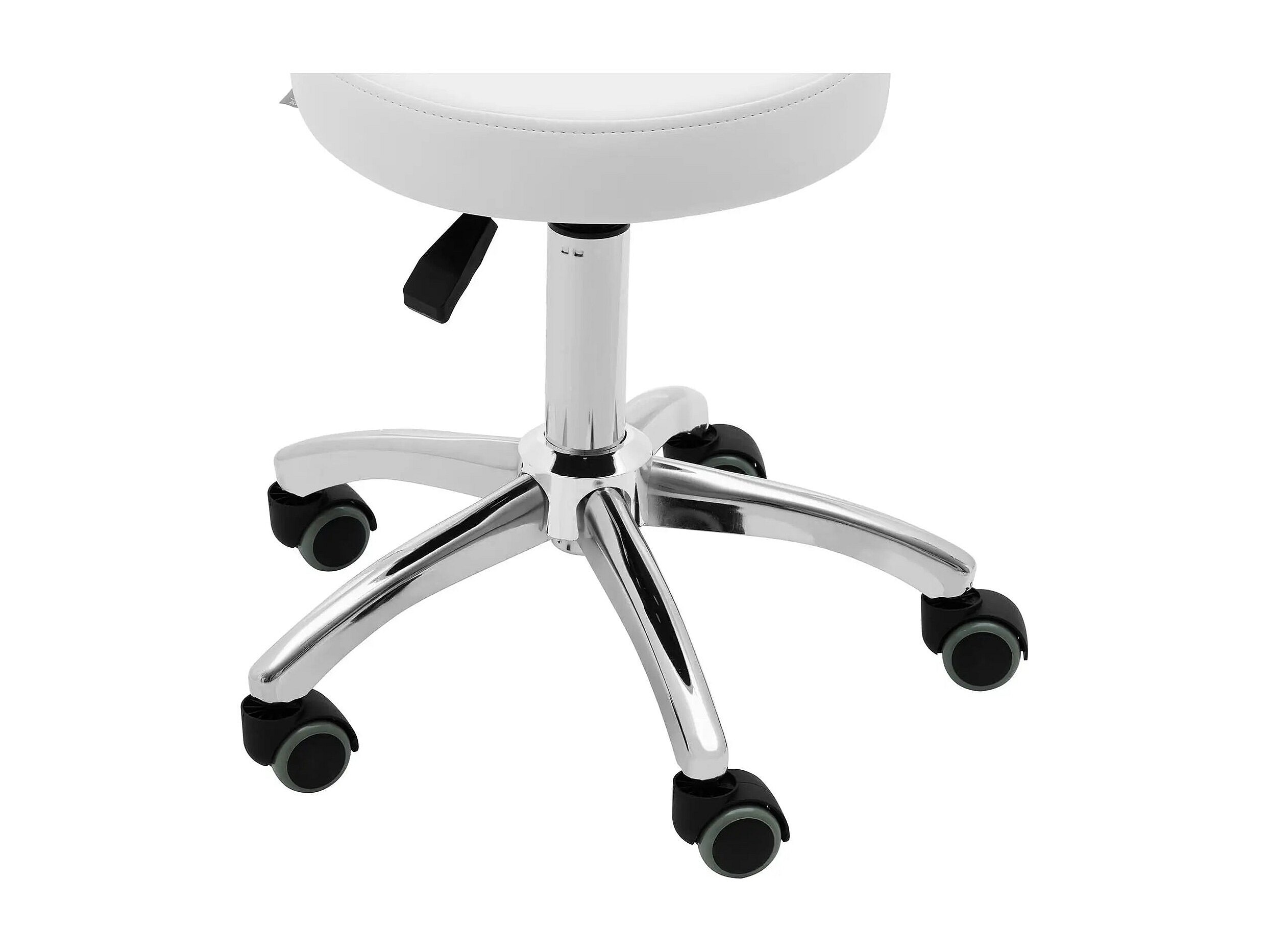 Taburete con ruedas y respaldo 150 kg aluminio PVC contrachapado espuma sintética color blanco 14_0010104