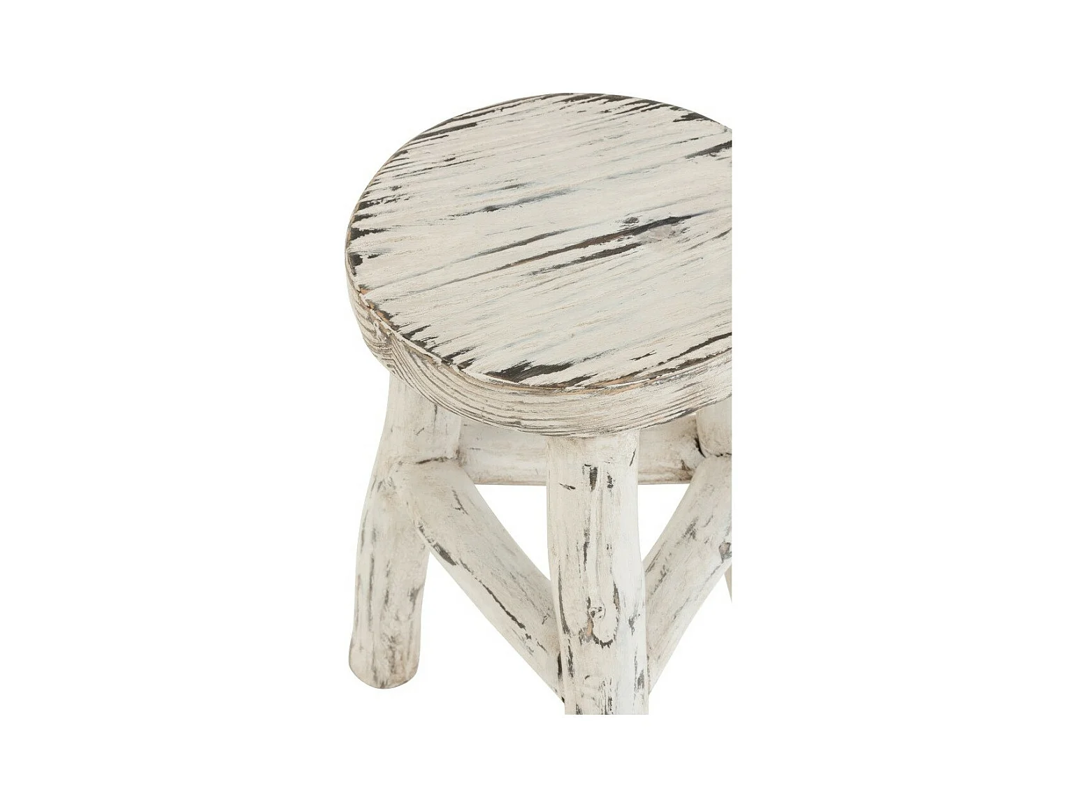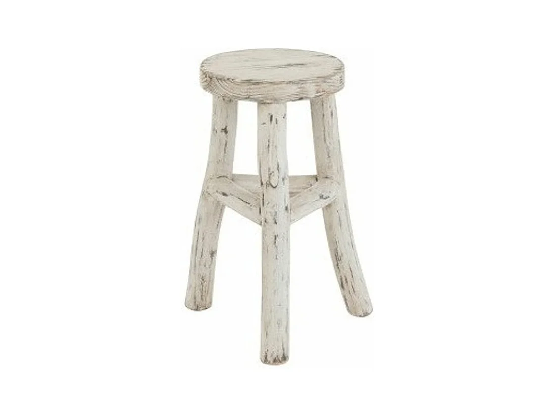 Taburete redondo de madera maciza blanca lavada Liray