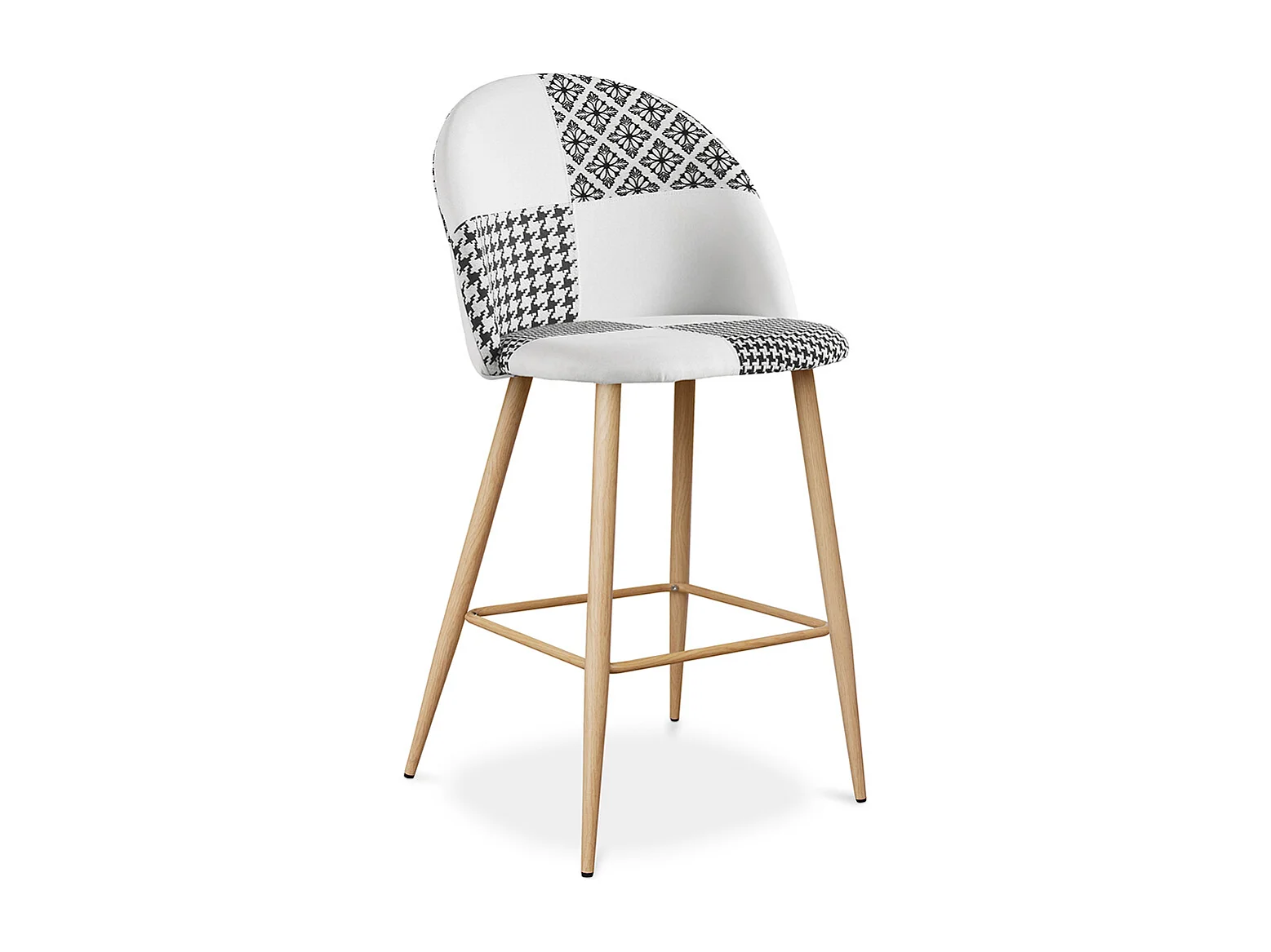Taburete Tapizado en Patchwork - Estilo Escandinavo - Blanco y Negro - 66cm - Evelyne