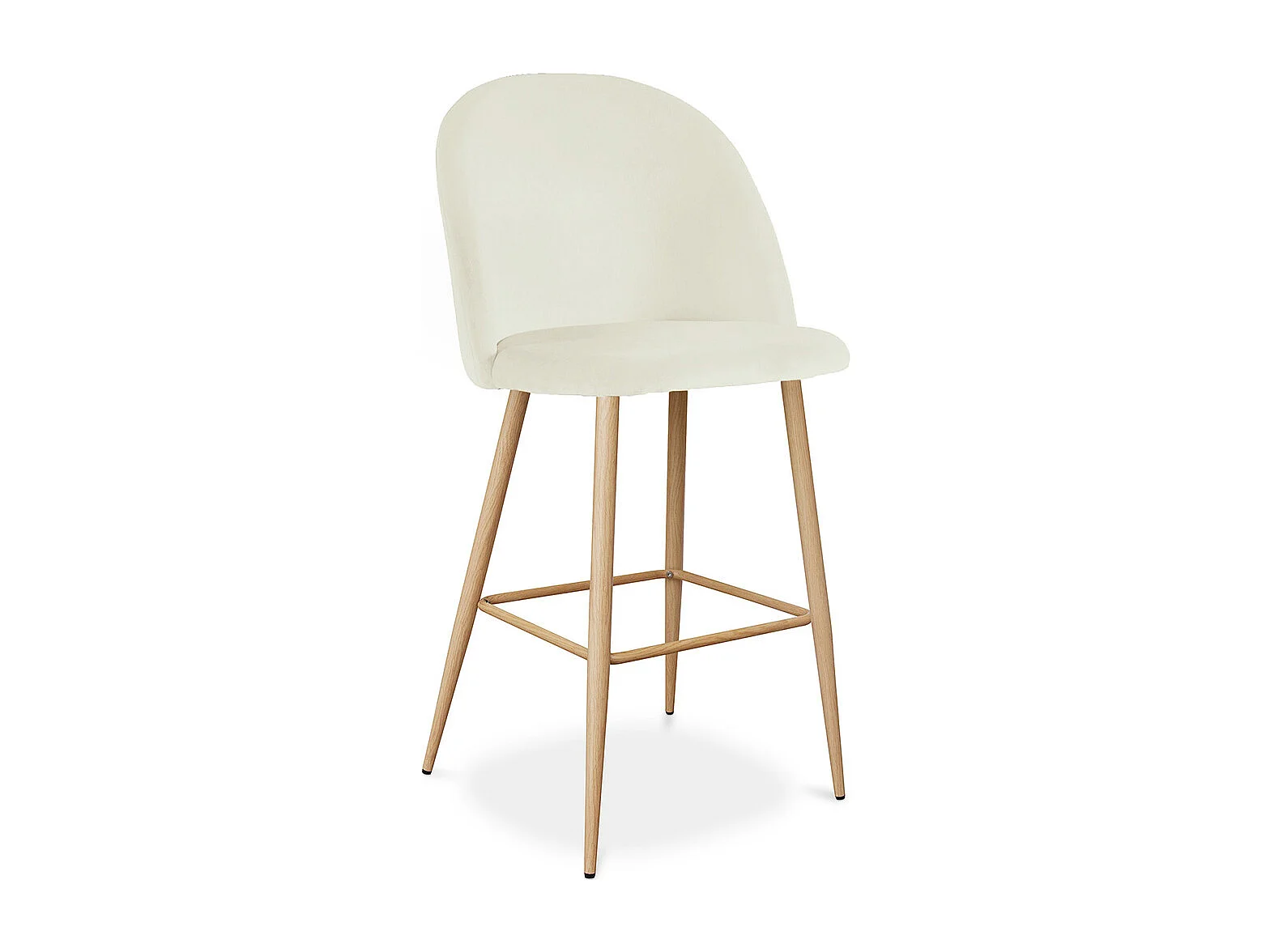 Taburete Tapizado en Terciopelo - Diseño Escandinavo - Evelyne Crema