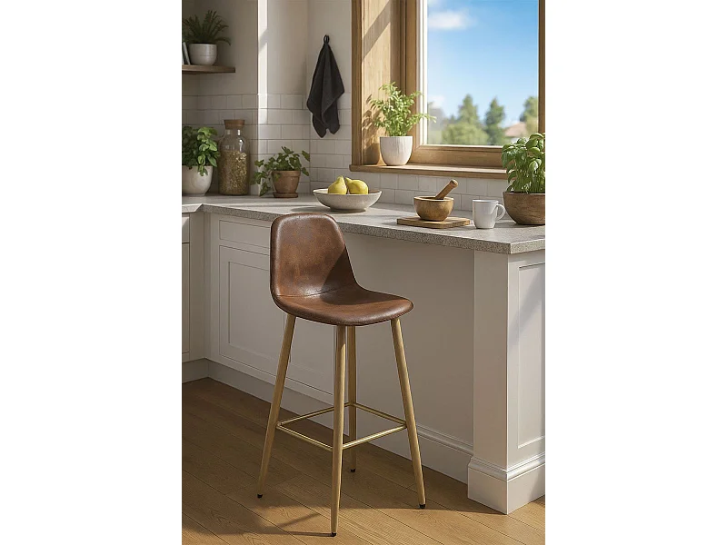 Taburete de cocina de cuero sintético marrón