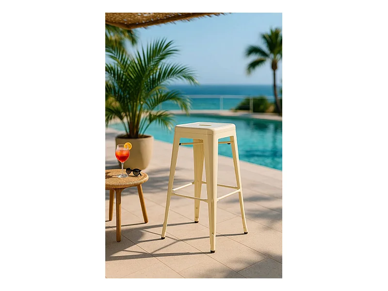 Silla de bar de terciopelo beige con patas de metal negro FIT