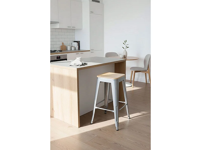 Taburetes Bajos - Taburete Torix Bajo Madera Natural - Gris metalizado