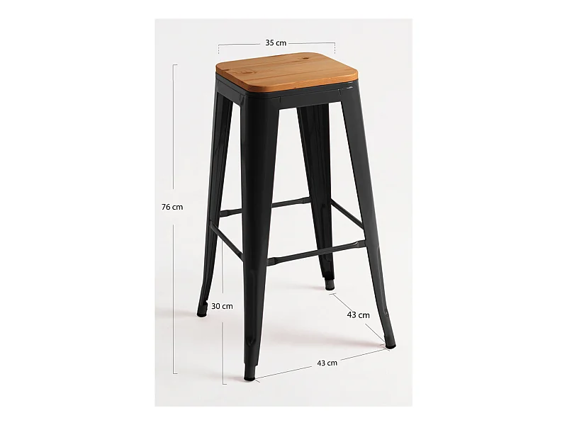 Lote de 6 Taburetes Torix Altos Madera Natural - Negro mate