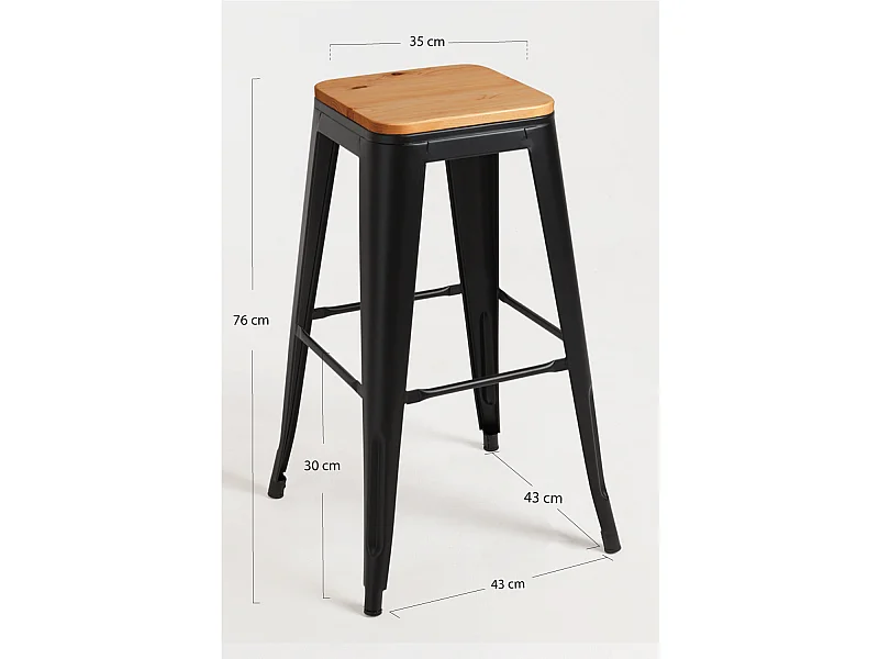 Lote de 4 Taburetes Torix Altos Madera Natural - Negro