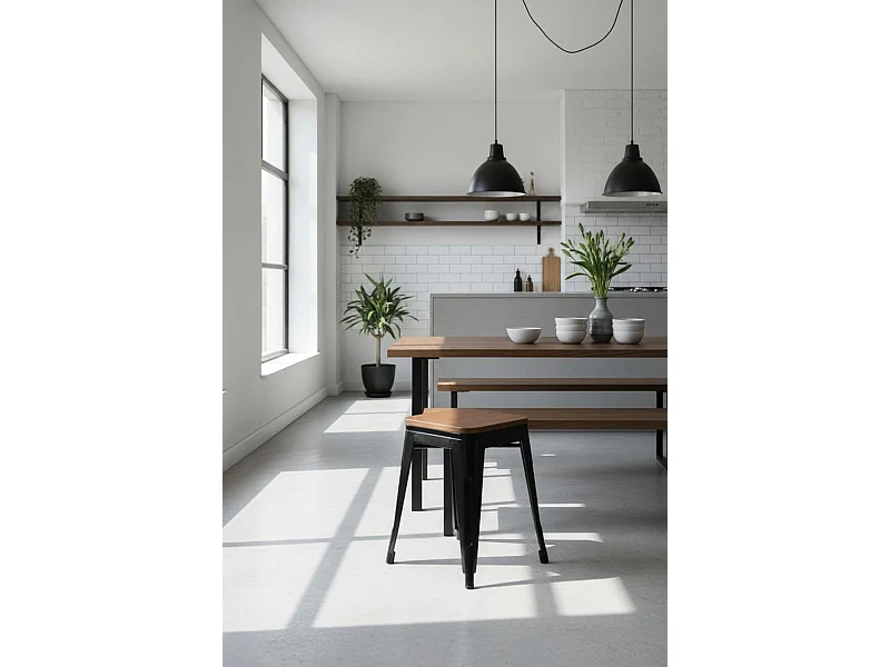 Taburetes Pequeños - Taburete Torix Pequeño Madera Natural - Negro