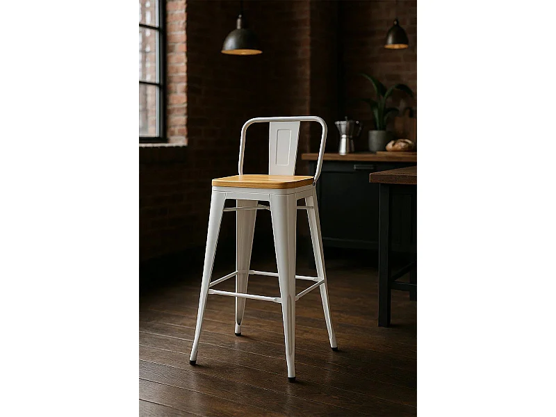 Taburetes Altos - Taburete Torix Respaldo Madera Natural - Blanco