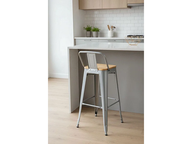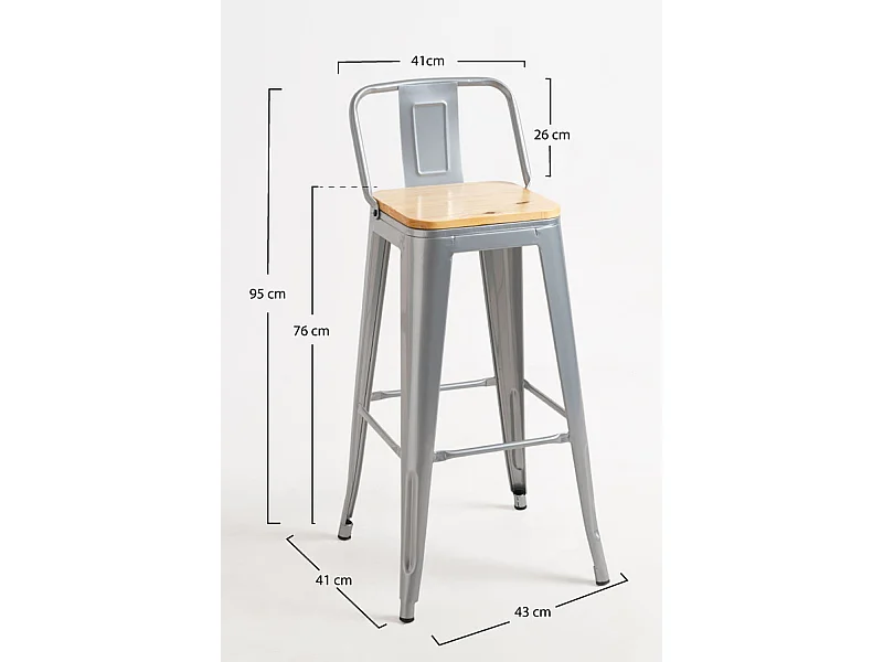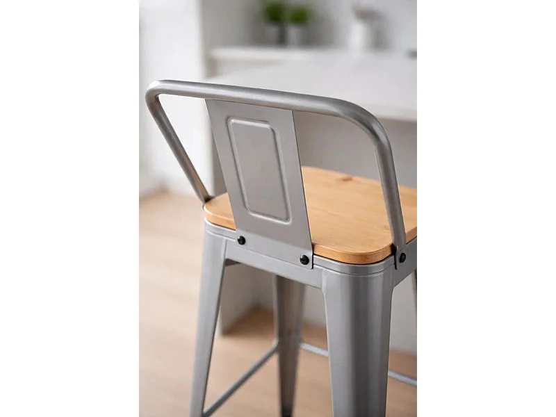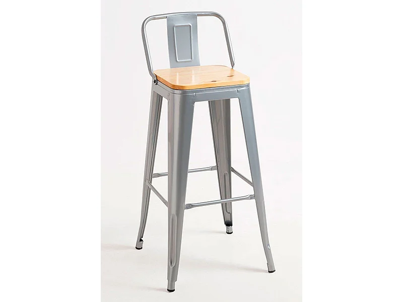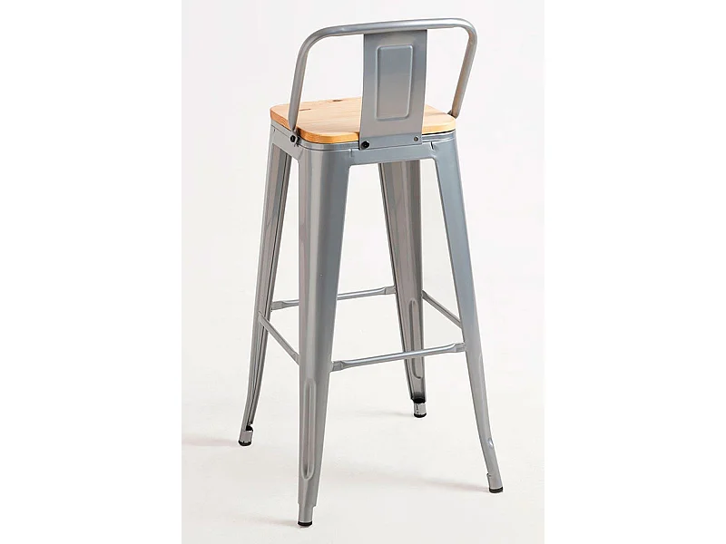 Taburetes Altos - Taburete Torix Respaldo Madera Natural - Gris metalizado