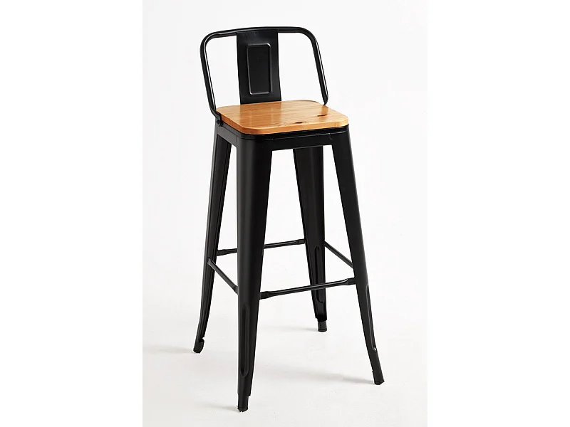 Taburetes Altos - Taburete Torix Respaldo Madera Natural - Negro