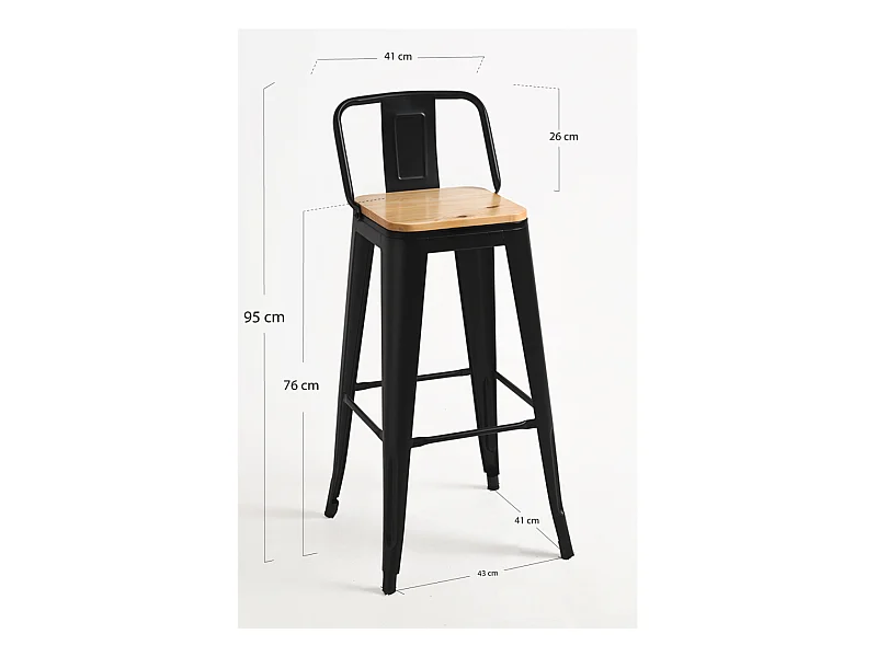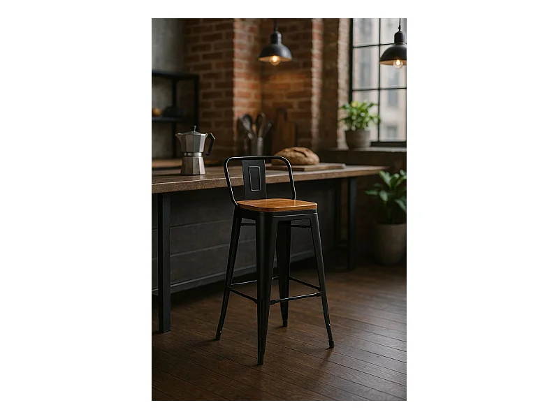 Taburetes Altos - Taburete Torix Respaldo Madera Natural - Negro mate