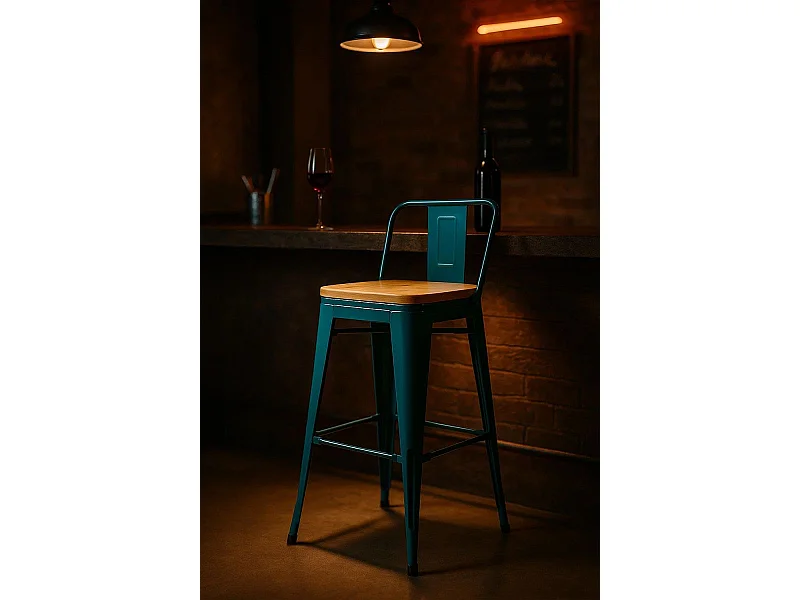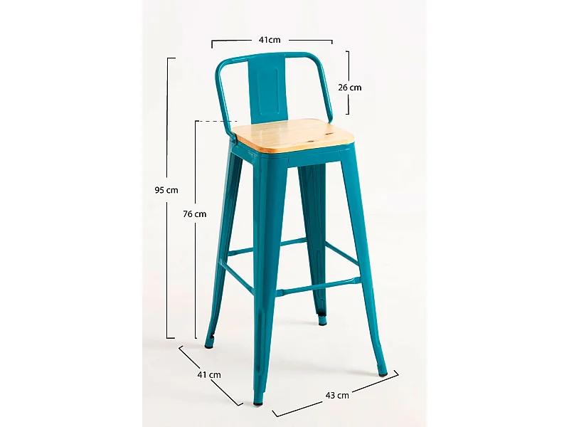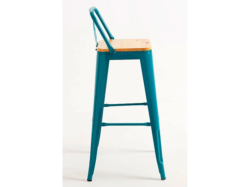 Taburetes Altos - Taburete Torix Respaldo Madera Natural - Verde azulado