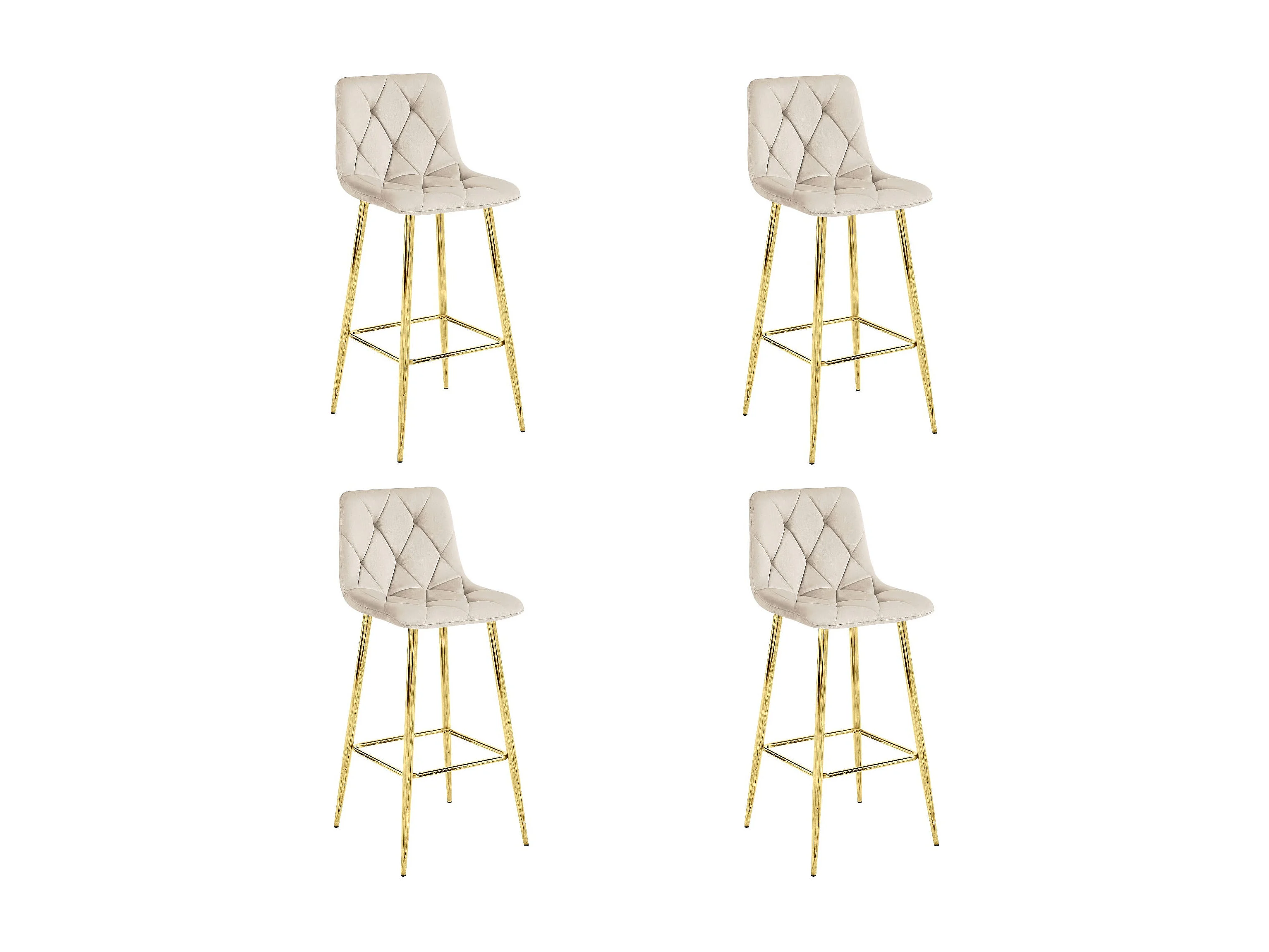 Taburete Valora KODA, color beige terciopelo, patas doradas, para cocina (x4)