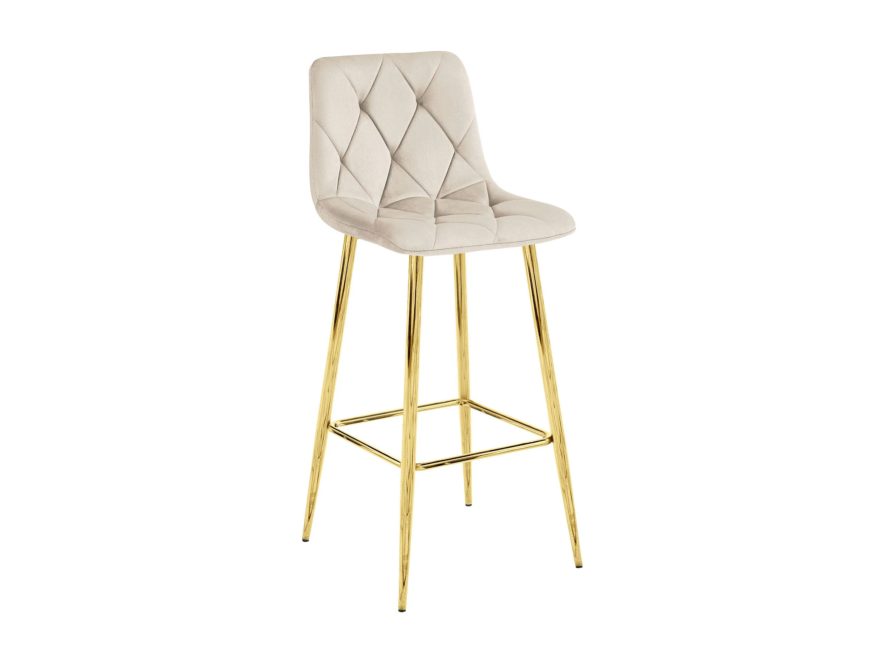 Taburete Valora KODA, taburete de bar, terciopelo beige, patas doradas (x2)