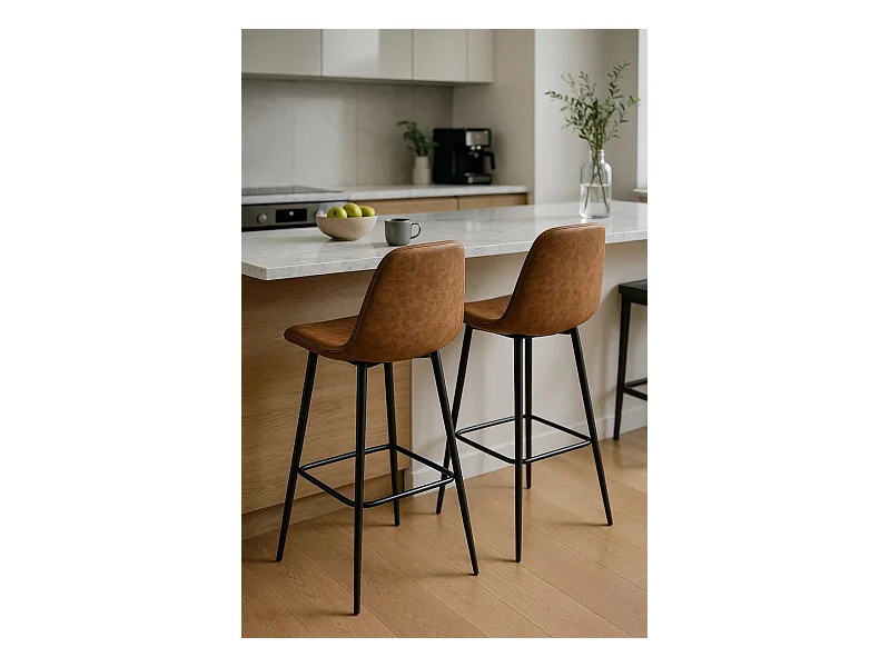Lote de 2 Taburetes Veki Polipiel Vintage - Marrón Chocolate