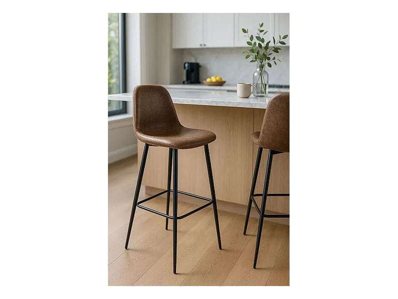 Lote de 2 Taburetes Veki Polipiel Vintage - Marrón Chocolate
