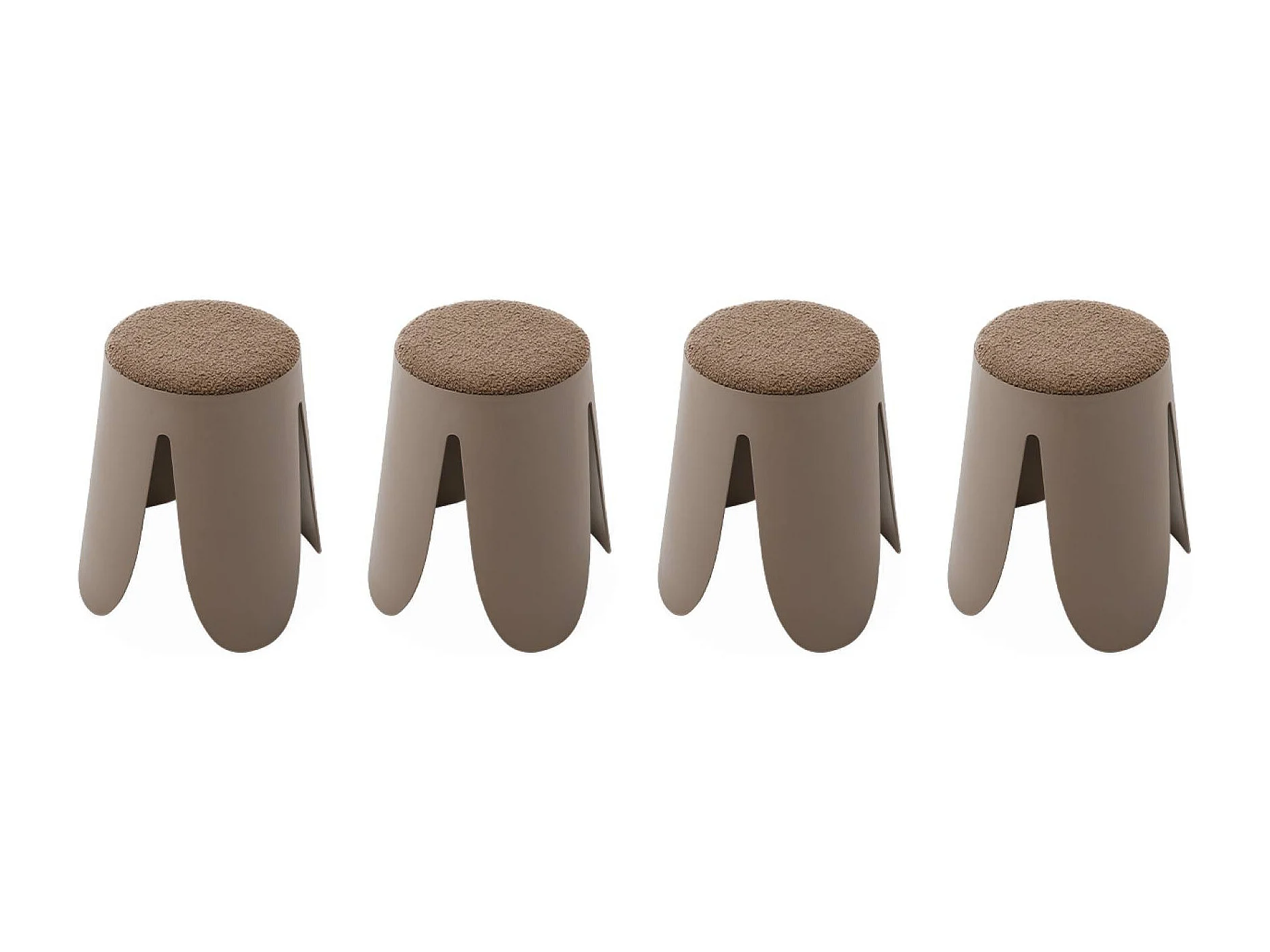Taburetes apilable de borreguito texturizado, set de 4 marrón