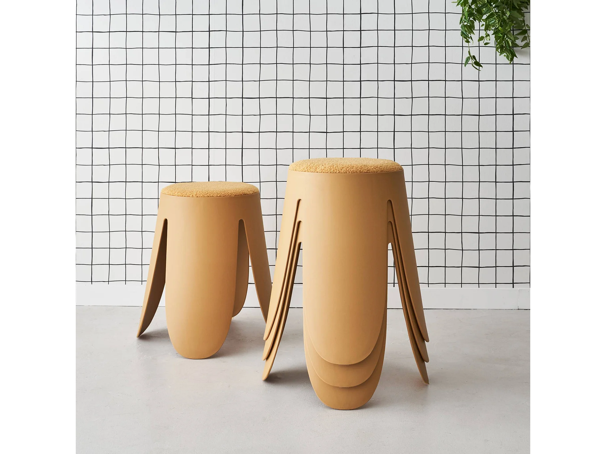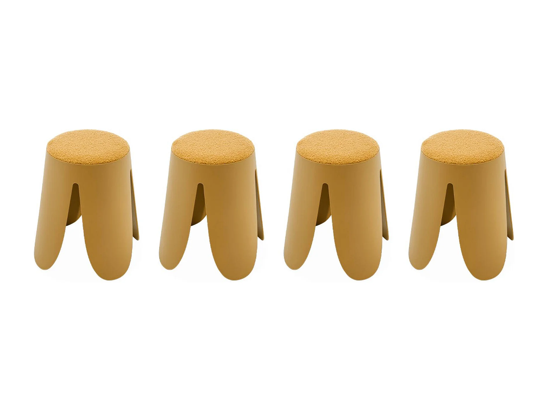 Taburetes apilable de borreguito texturizado, set de 4 mostaza