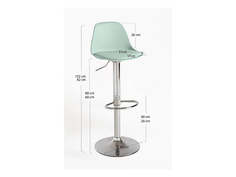 Silla de mostrador MARIO – PP verde grisáceo – Patas de metal – Altura 100,5 cm – Estilo moderno